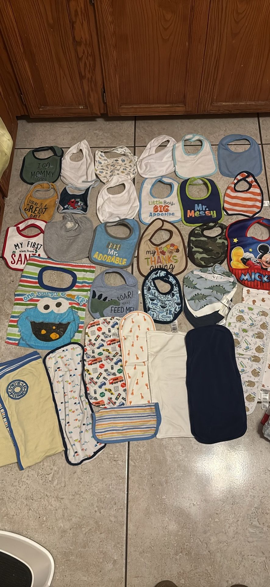 Bibs and burp cloths, & 1 towel