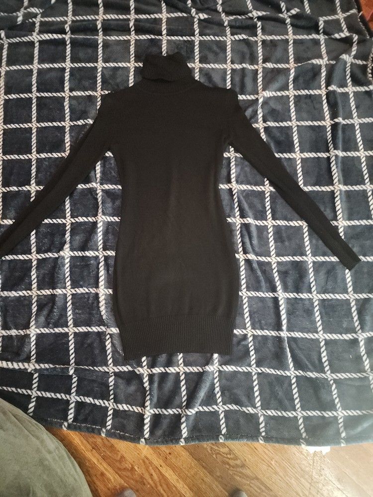 Long sleeve, turtle neck, knit pattern, sweater, dress. Size is labeled as medium but fits well as a small.