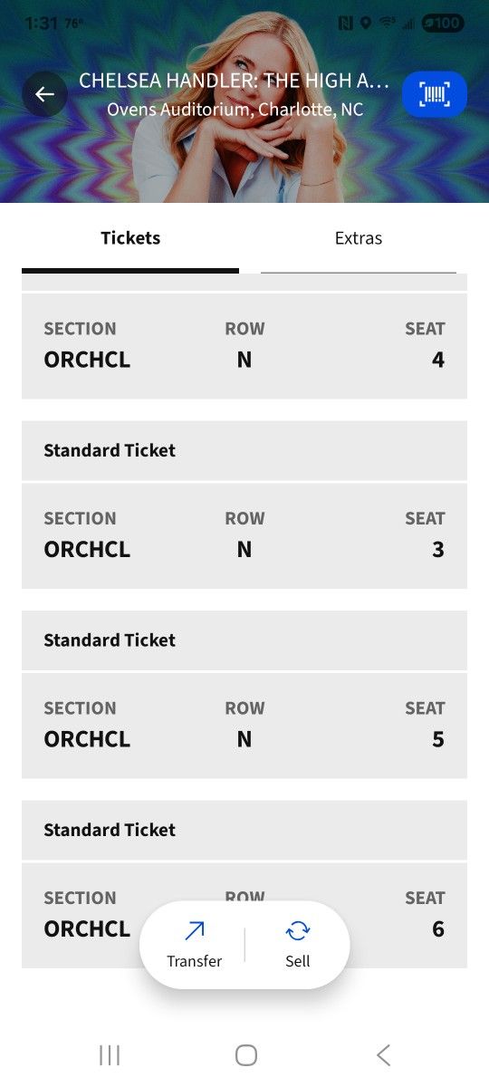 Chelsea Handler tickets. ORCHCL ROW N seats 3 to 6. Friday, May 1st 8pm. Ovens Auditorium.