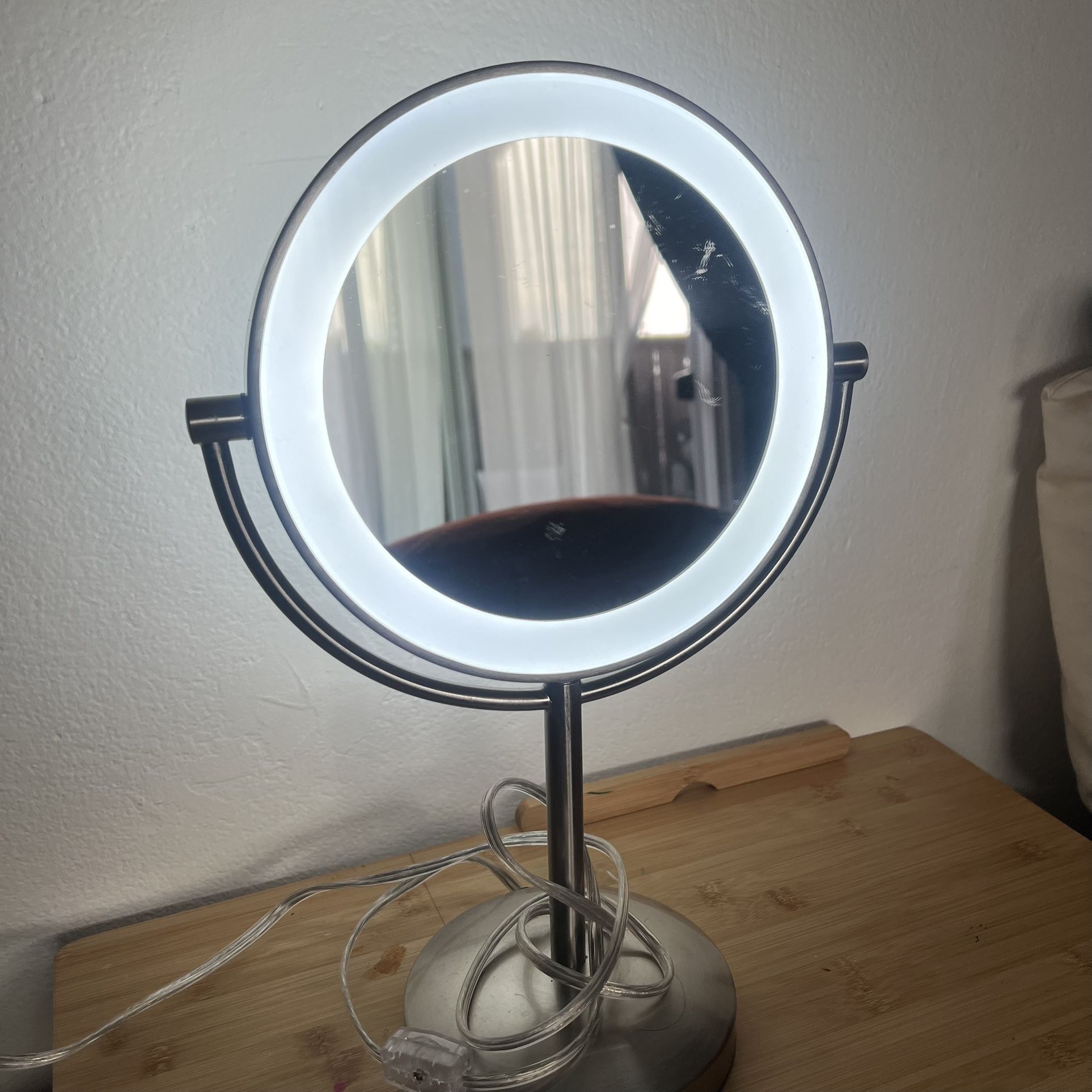 Conair LED Double-Sided 1x/10x Vanity Mirror -plugs into outlet for light -brushed nickel finish -360 rotation Pick up only