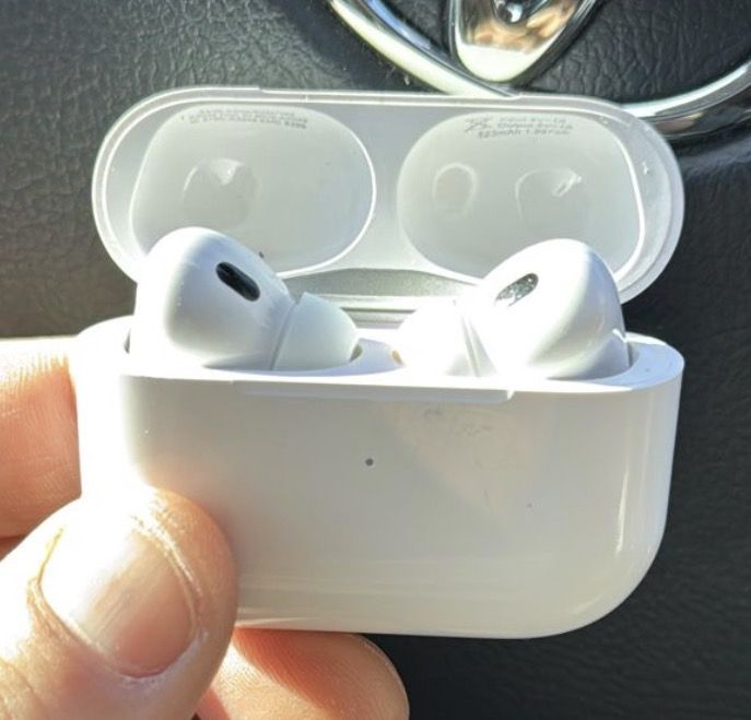 Barely used. They don’t fit in my ears. I have cauliflower ear from wrestling 😂 Immersive Sound: AirPods Pro feature Active Noise Cancellation for an immersive listening experience. Transparency Mode: Allows you to hear and interact with the world around you. Customizable Fit: Includes three sizes of soft, tapered silicone tips for all-day comfort. Spatial Audio: Dynamic head tracking places sound all around you for a more engaging experience. Adaptive EQ: Automatically tunes music to your ears for optimal sound quality. Durable Design: Sweat and water resistant, making them suitable for non-water sports and exercise. Extended Battery: More than 24 hours of total listening time with the MagSafe Charging Case. Effortless Setup: Quick access to Siri, in-ear detection, and automatic switching for a seamless experience. Apple AirPod Pros Headphones