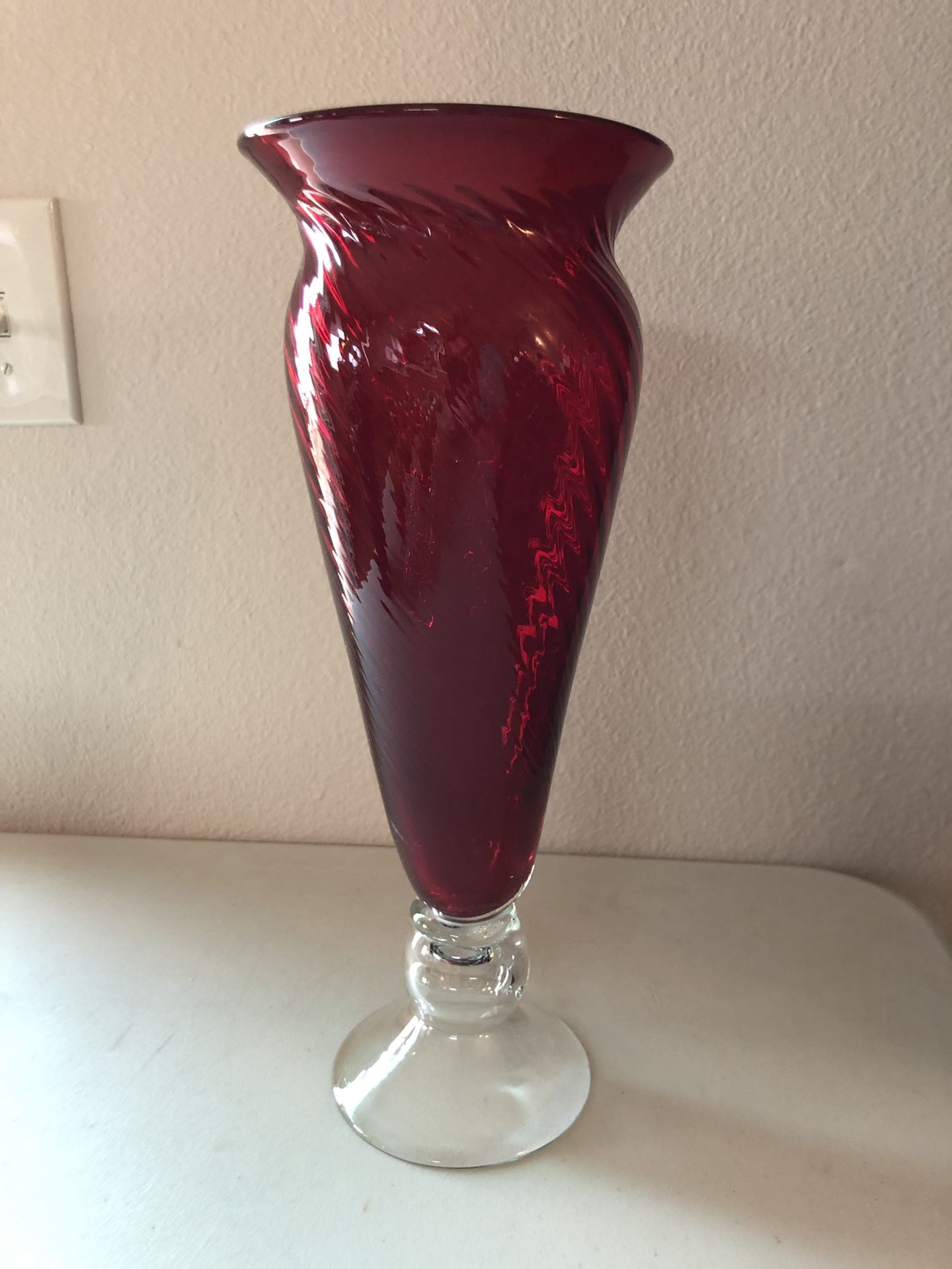 Glass Flower Vase Measurements are : 14 1/2” Tall 6” Wide Excellent condition No chips / cracks