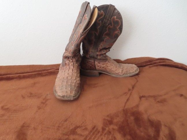 fair to decent shape would consider a clean up and will need new soles Horse Power Nile Croc Print Western Boot Brown Men Size 8 D (READ DESCRIPTION)