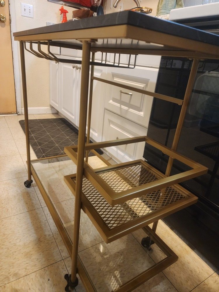 Mueblesito para cosina,sala o cuarto👌totalmente multiusos ✔️super resistente con Llantitas y muy masizo👍fácil y práctico de mover,es de metal,vidrio y madera tipo cuarzo,sin detalles en exelentes condiciones ✅️ $50..lo tengo en brawley.