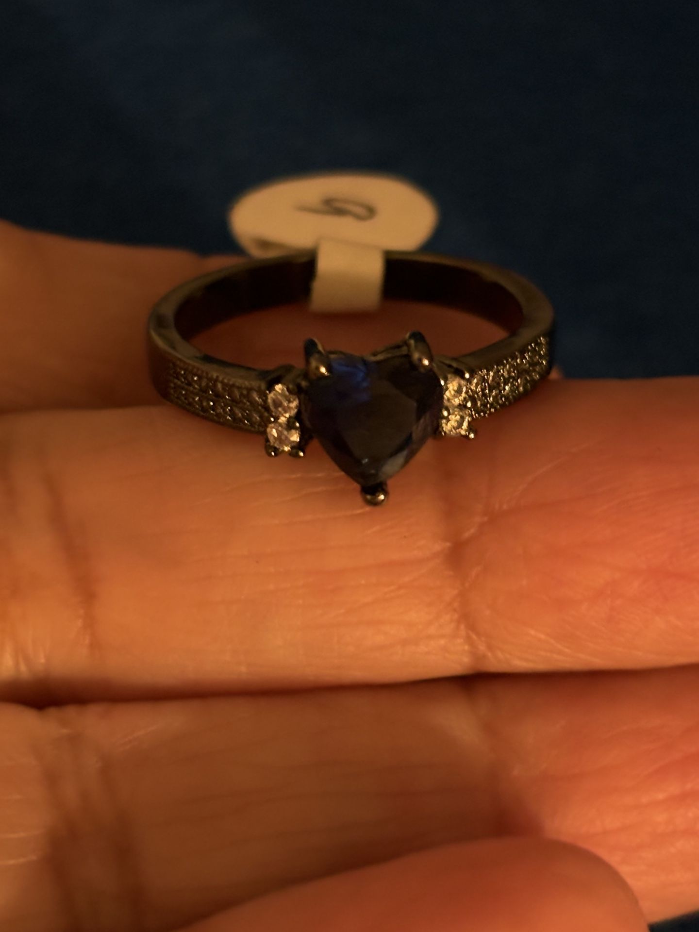 Beautiful Sapphire Heart Ring 925 Stamped Size 9 Black Color Band with CZ Stones New without tags