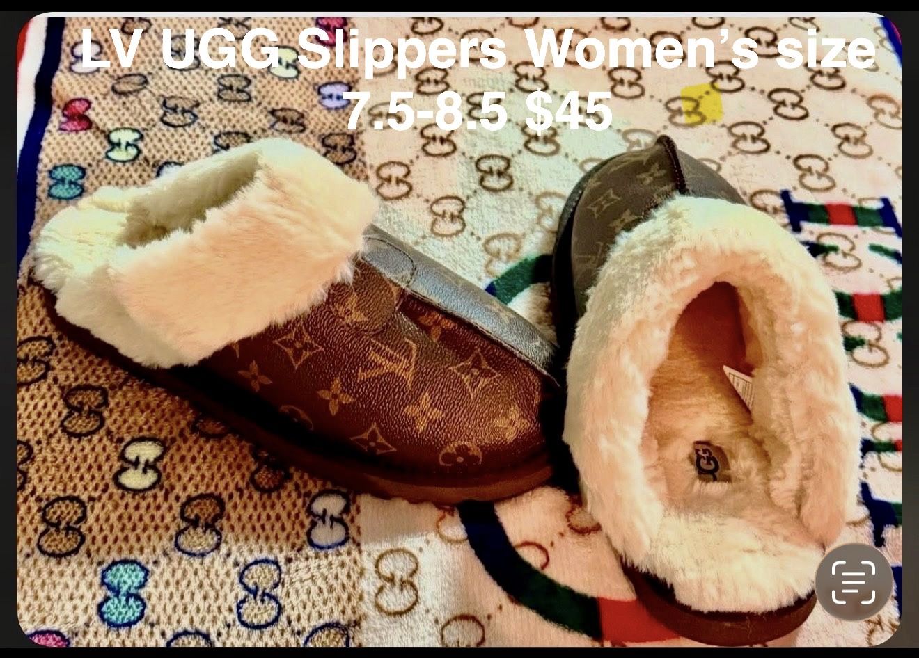 Fury LV UGG leather slippers Women’s size 7.5-8.5