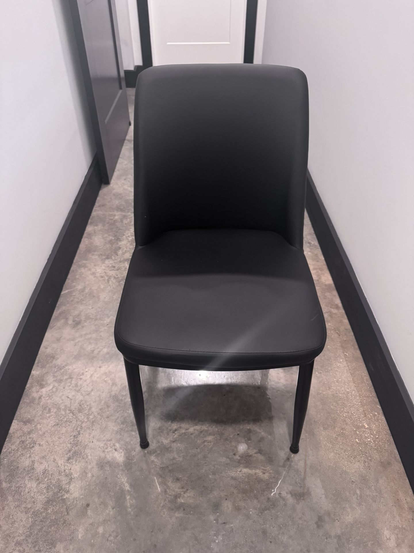 Modern Black Dining Chair – Sleek & Comfortable Upgrade your space with this stylish modern dining chair. Featuring a smooth black finish with a curved backrest, it offers both comfort and a clean, contemporary look that fits perfectly in dining rooms, offices, or even as an accent chair. Details: • Color: Black • Material: Durable faux leather / molded seat with sturdy legs • Comfortable curved back for support • Lightweight yet sturdy • Easy to clean Quantity: 7 not sold separately Great condition – gently used with minimal signs of wear. Perfect for dining tables, conference rooms, or extra seating!