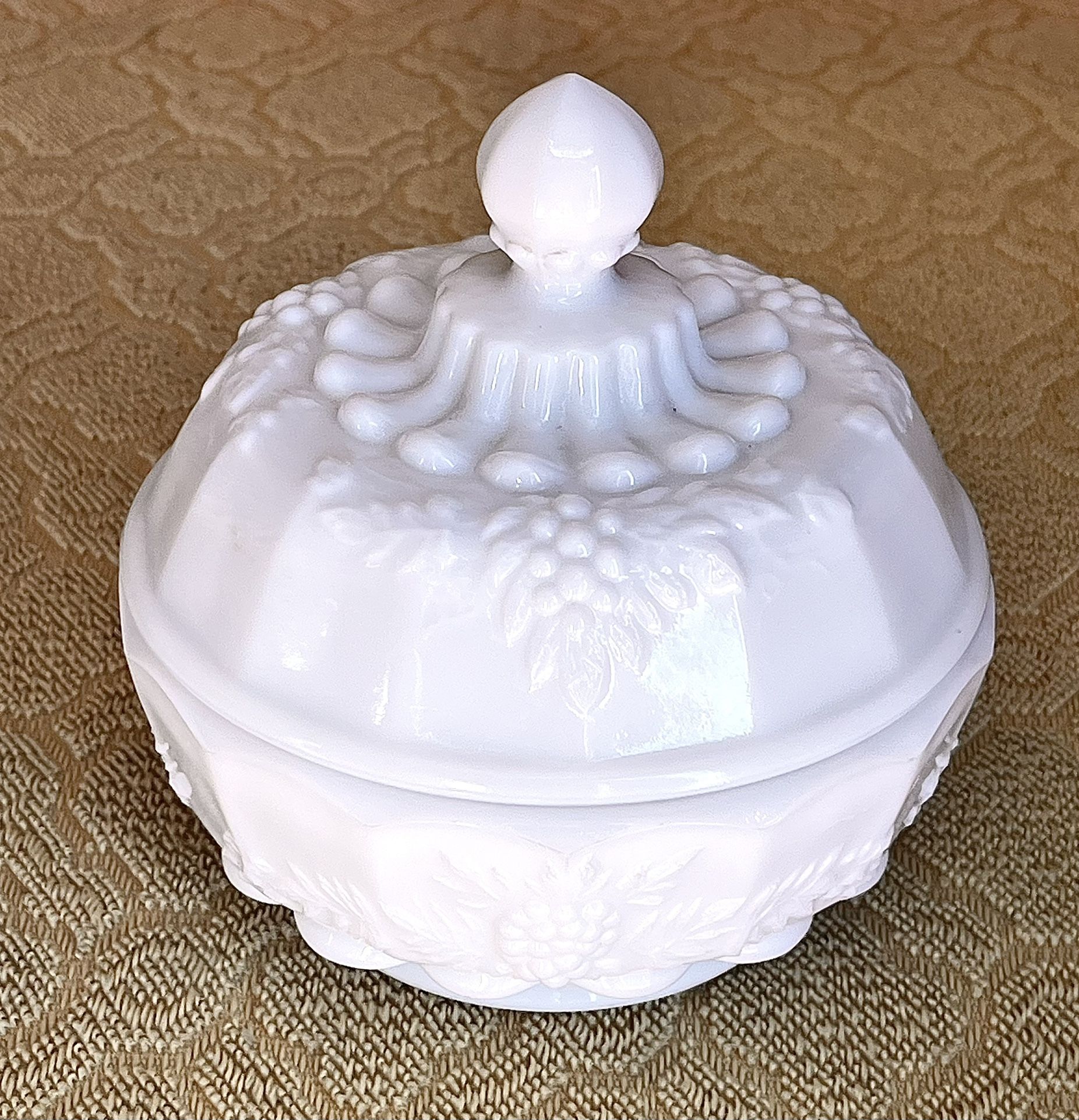 Vintage Westmoreland “Paneled Grape” Pattern Milk Glass Covered Candy Dish