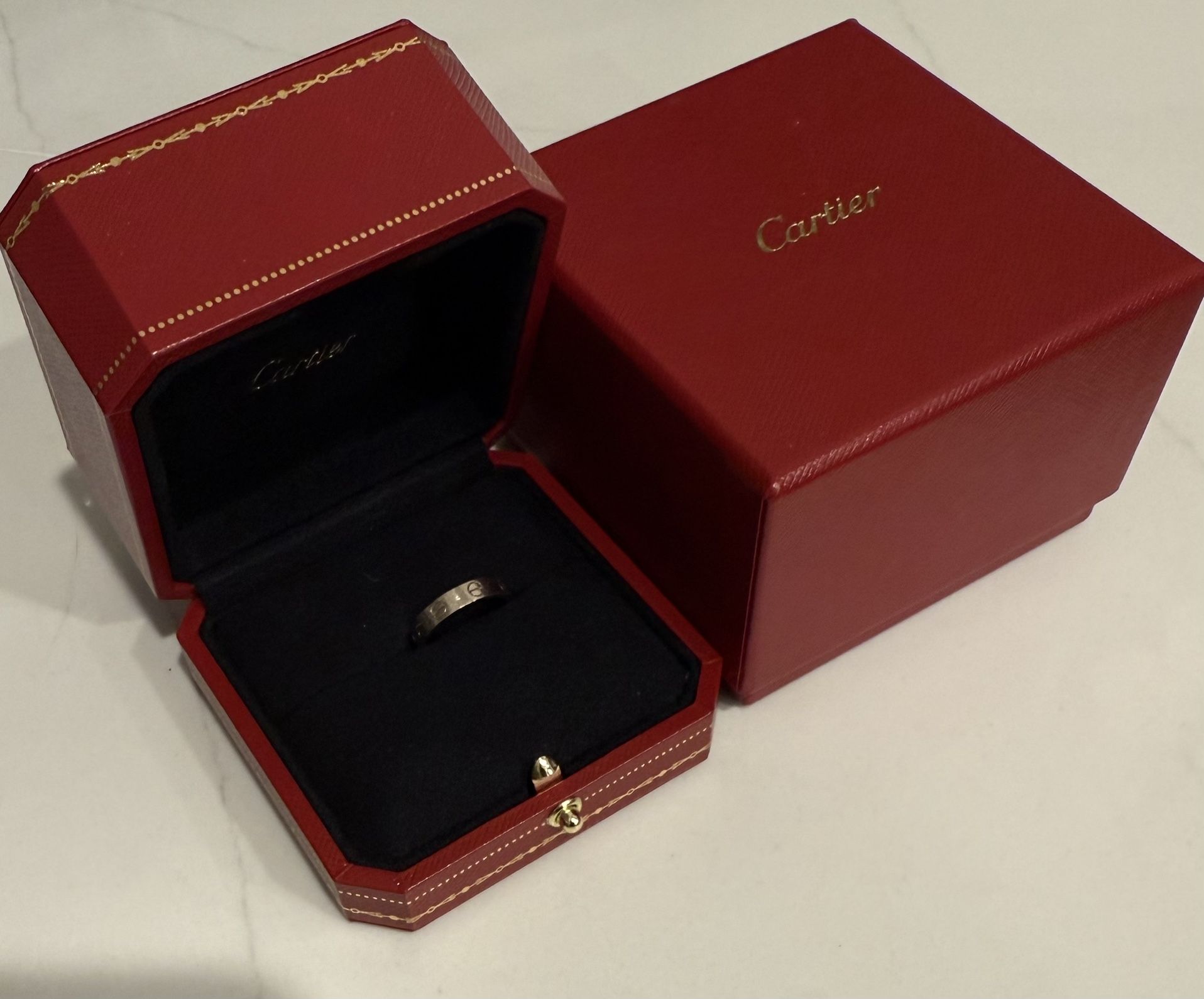 Mini Has box and gift box Has some scratching but overall great condition 50mm(US size 5 1/4)