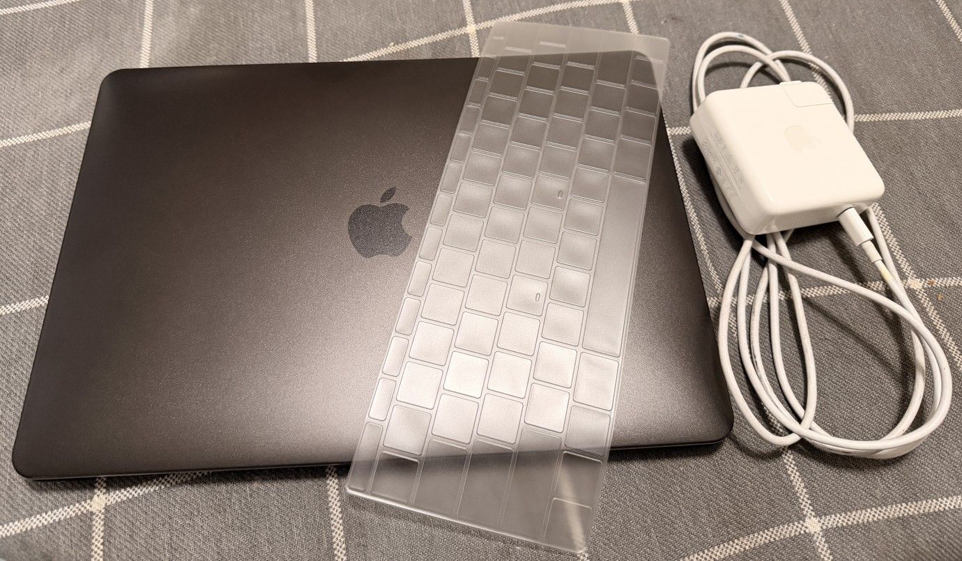 Offers offers 1. Macbook Pro 2. Year 2017 3. 13 inch 4. 8gb Lpddr3 ram 5. 128GB Apple SSD 6. Good Battery Health 7. Original 61W Charger & usb-c 8. Brand New Dark Case 9. Brand new Keyboard Cover
