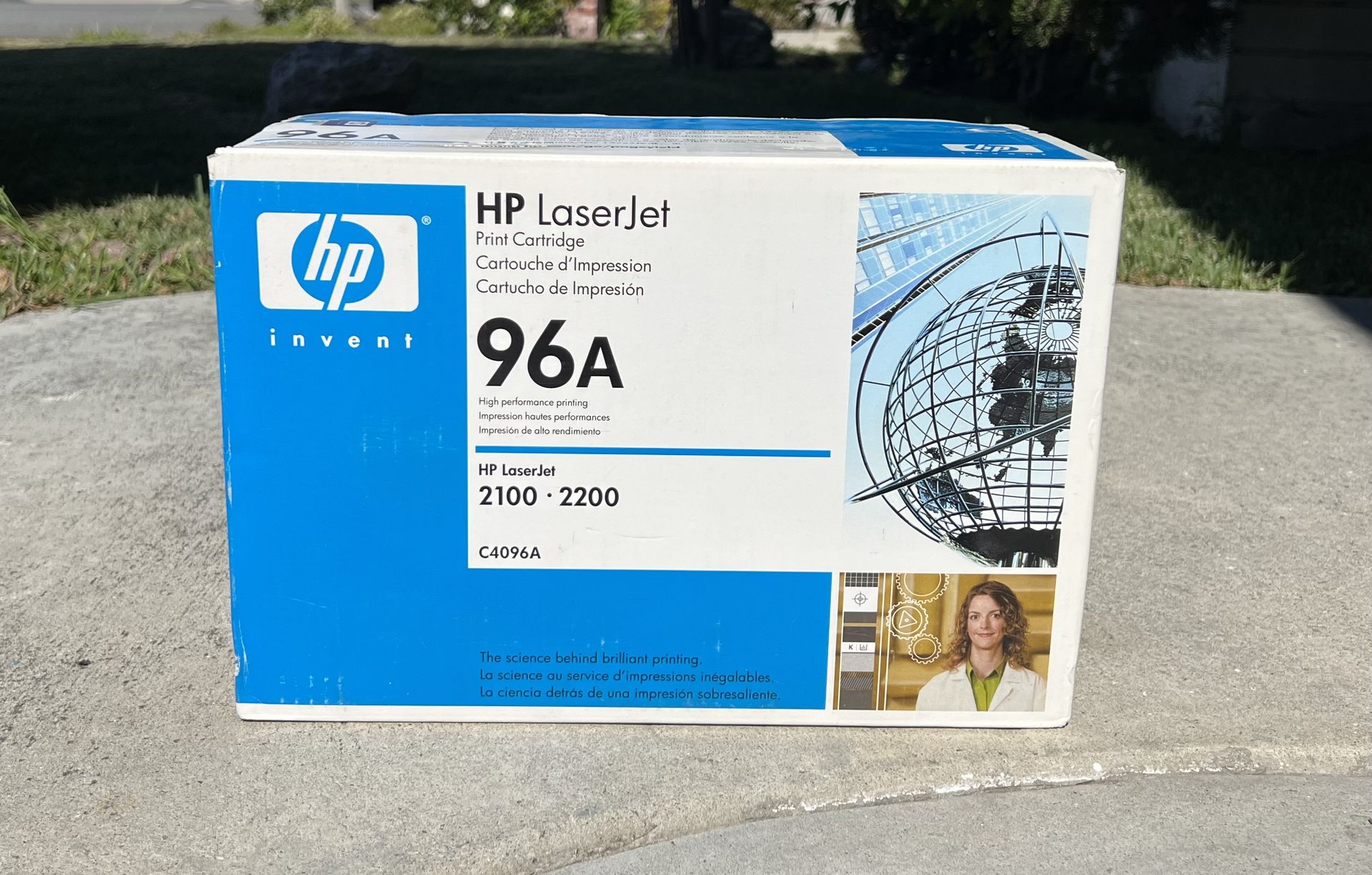 Genuine HP C4096A (96A) Black Toner Cartridge for HP LaserJet 2100 and 2200 series printers. Original HP toner designed for reliable performance and sharp black text. Box may show shelf wear from storage, but the cartridge has not been used. ✔ Genuine OEM HP cartridge ✔ Model C4096A / 96A ✔ Black toner ✔ For HP LaserJet 2100 & 2200 series ✔ Box included (see photos for condition)