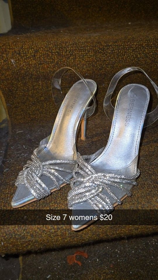 These are heels that are see through, back strap, with rhinestones on the toes.