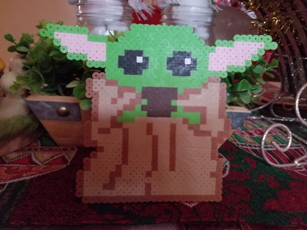 Handmade perler bead Grogu magnet. Price is firm!