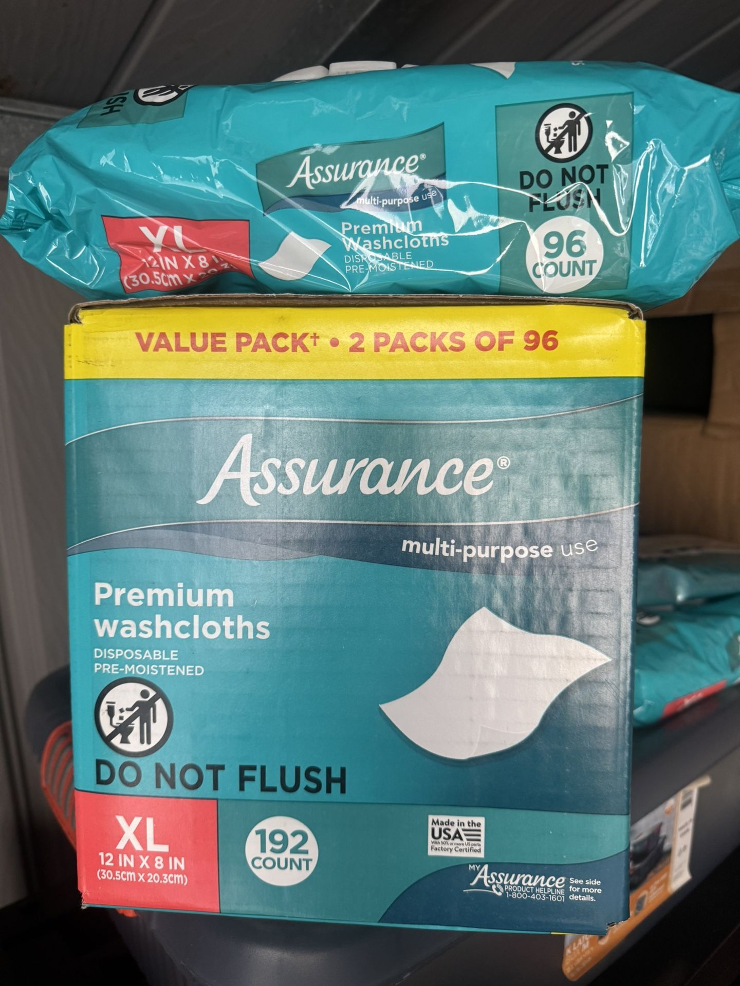 Assurance Premium Premoistened Washcloths, XL, 192 Count Pack