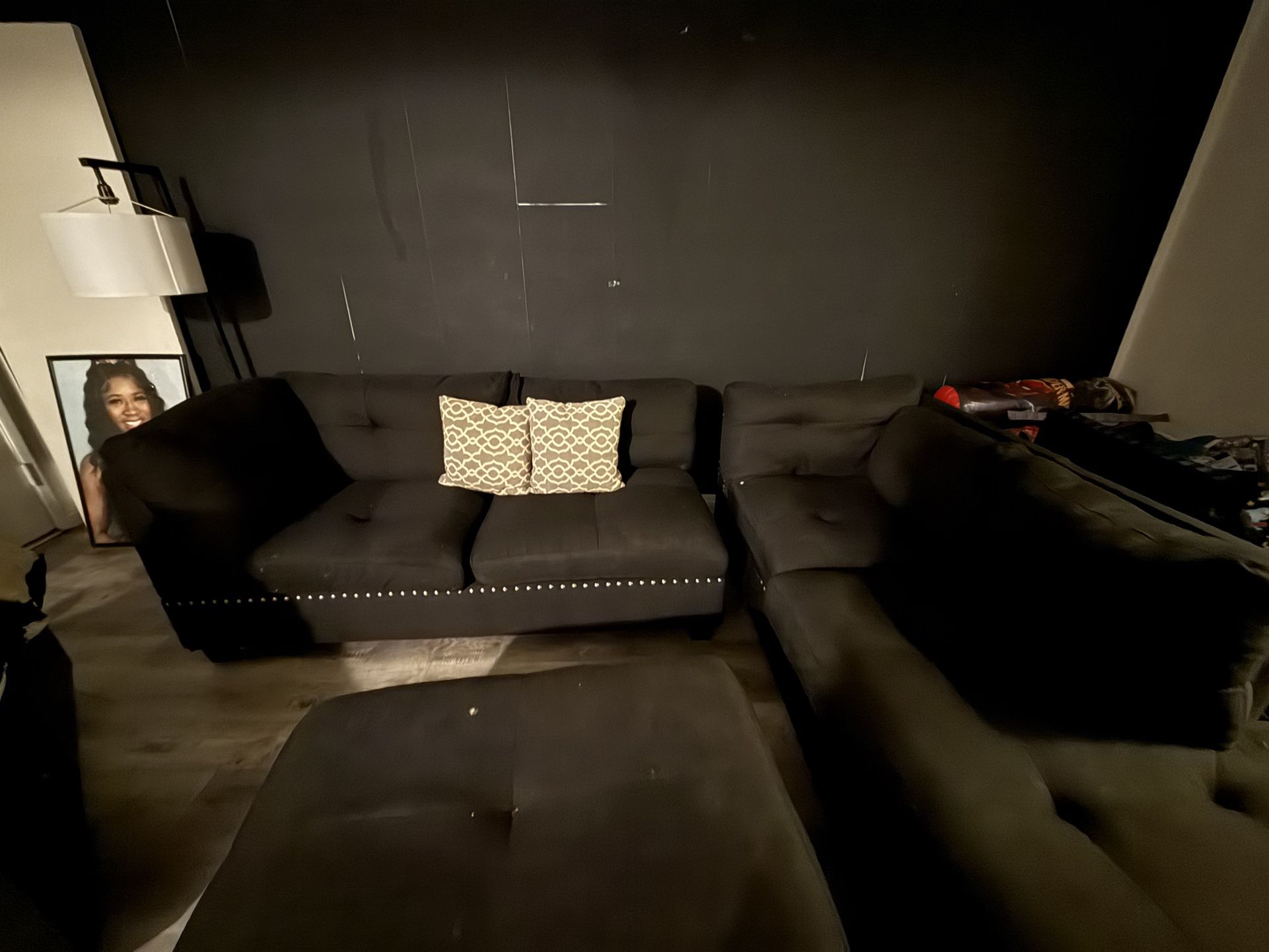 Black sectional & black coffee table , moving and getting new furniture!