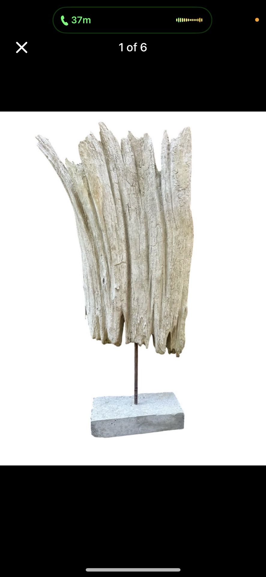 Beautiful driftwood sculpture naturally shaped by years in Michigan’s iconic Manistee River. Mounted on a concrete base with sturdy metal support. Rustic, coastal, and modern all in one. • Optionally sold as a set of 2 • Natural, one-of-a-kind pieces • Driftwood is not sealed • Measurements: concrete base is 11”x 5.5” height is 37” (other side is 35” tall as the wood is obviously not a uniform shape) width of wood at its widest point (the top) is ~19.5” Perfect statement pieces for home or office décor. Any questions please message me directly thanks