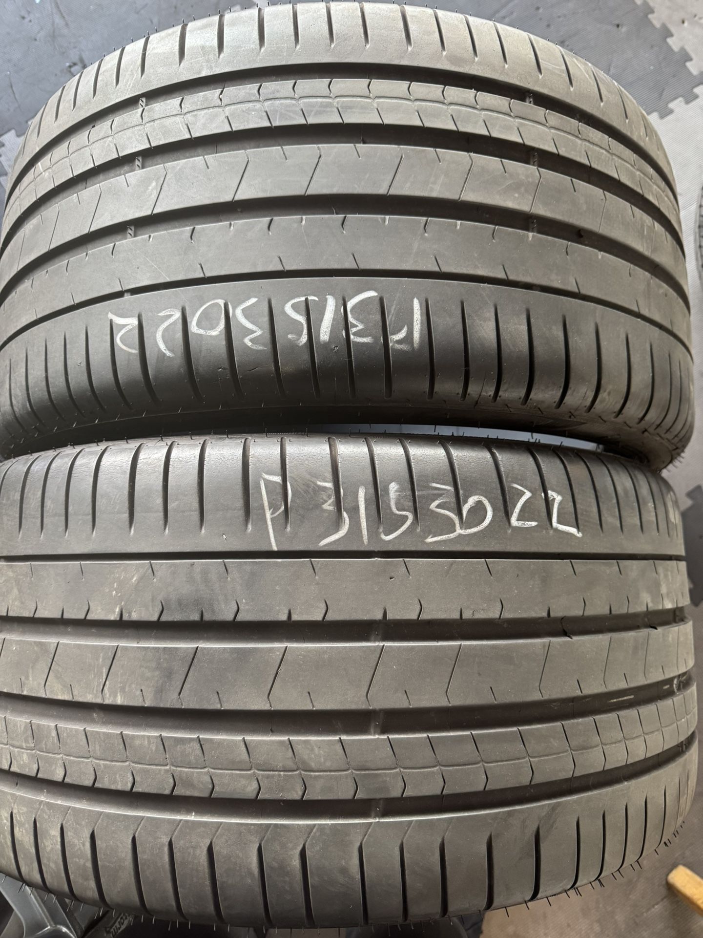 Price for 2 Good condition used tires 70%-80% tread 315/30ZR22 Pirelli Pzero No patch. Pick up in city Alhambra CA 91801 from 9-6pm installation is extra $25 each