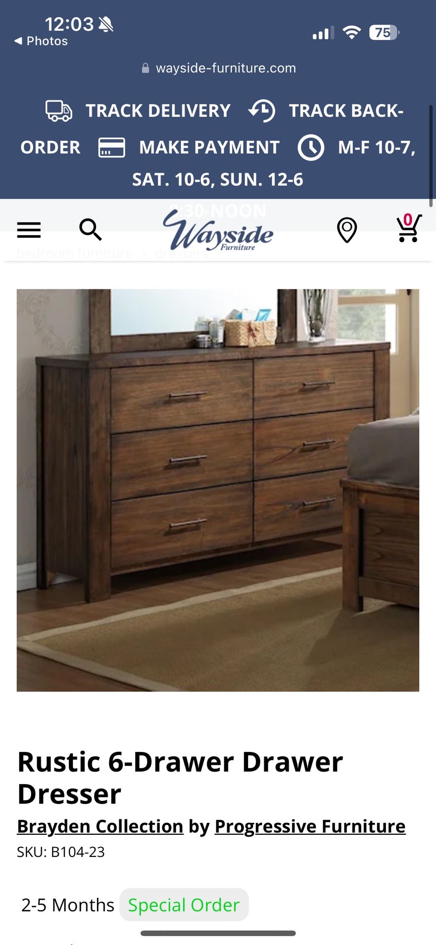 Rustic 6-Drawer Drawer Dresser