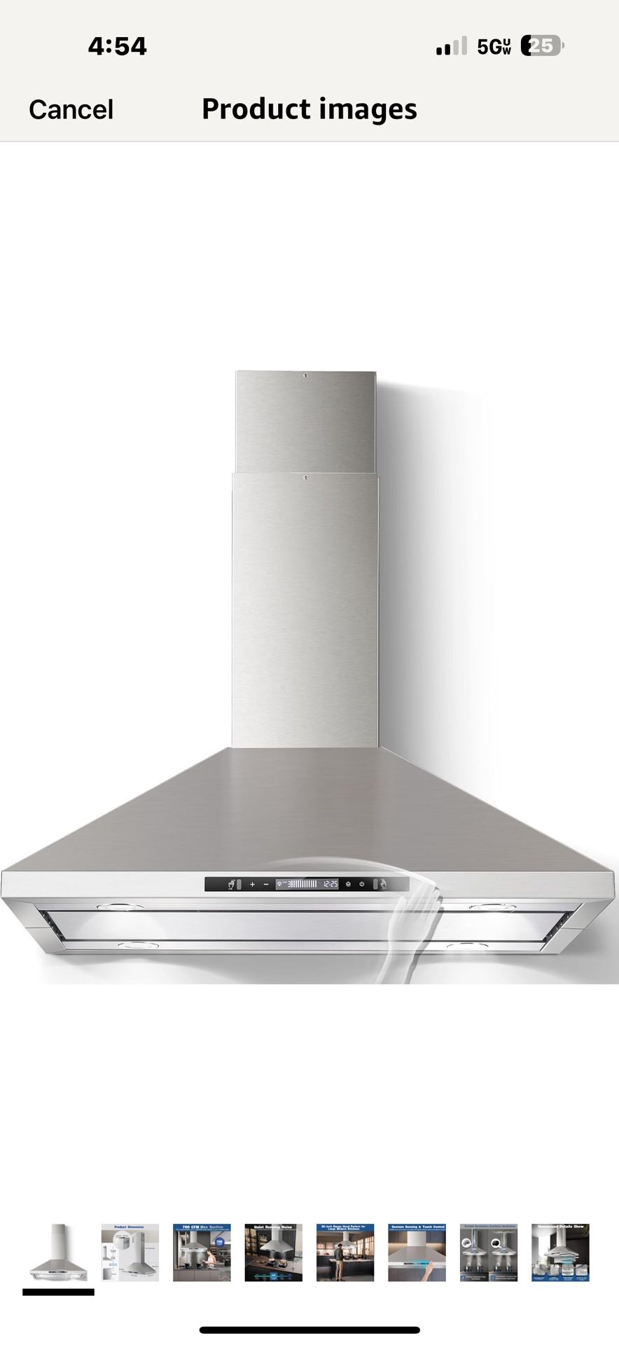 Island Range Hood 36 inch 700 CFM Ceiling Mount Kitchen Hood Vent with Gesture Sensing &Touch Control,Ducted/Ductless Convertible,3 Speeds Fan,4 LED Lights,Stainless Steel,Aluminum Filters