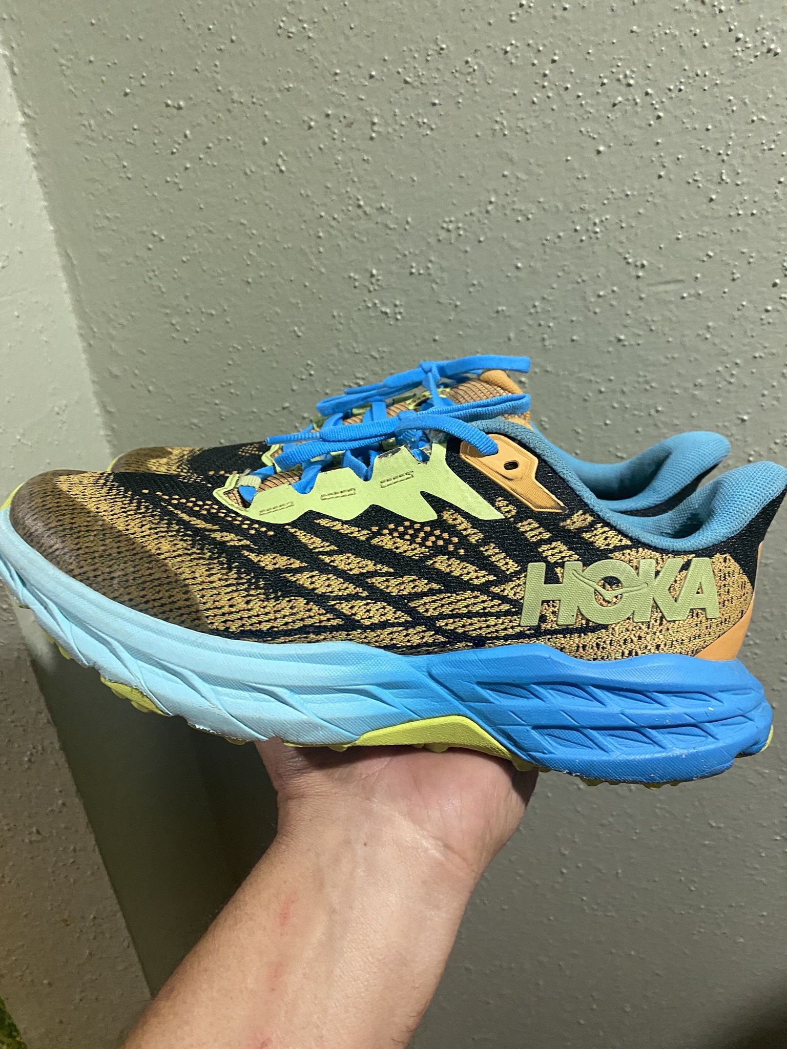 Hoka One Speedgoat 5 Trail Running Hiking Shoes Size 7 men’s, $40 firm price, good condition with normal wear still has a lot of life in them Pick up only,now ballers, public meet up only