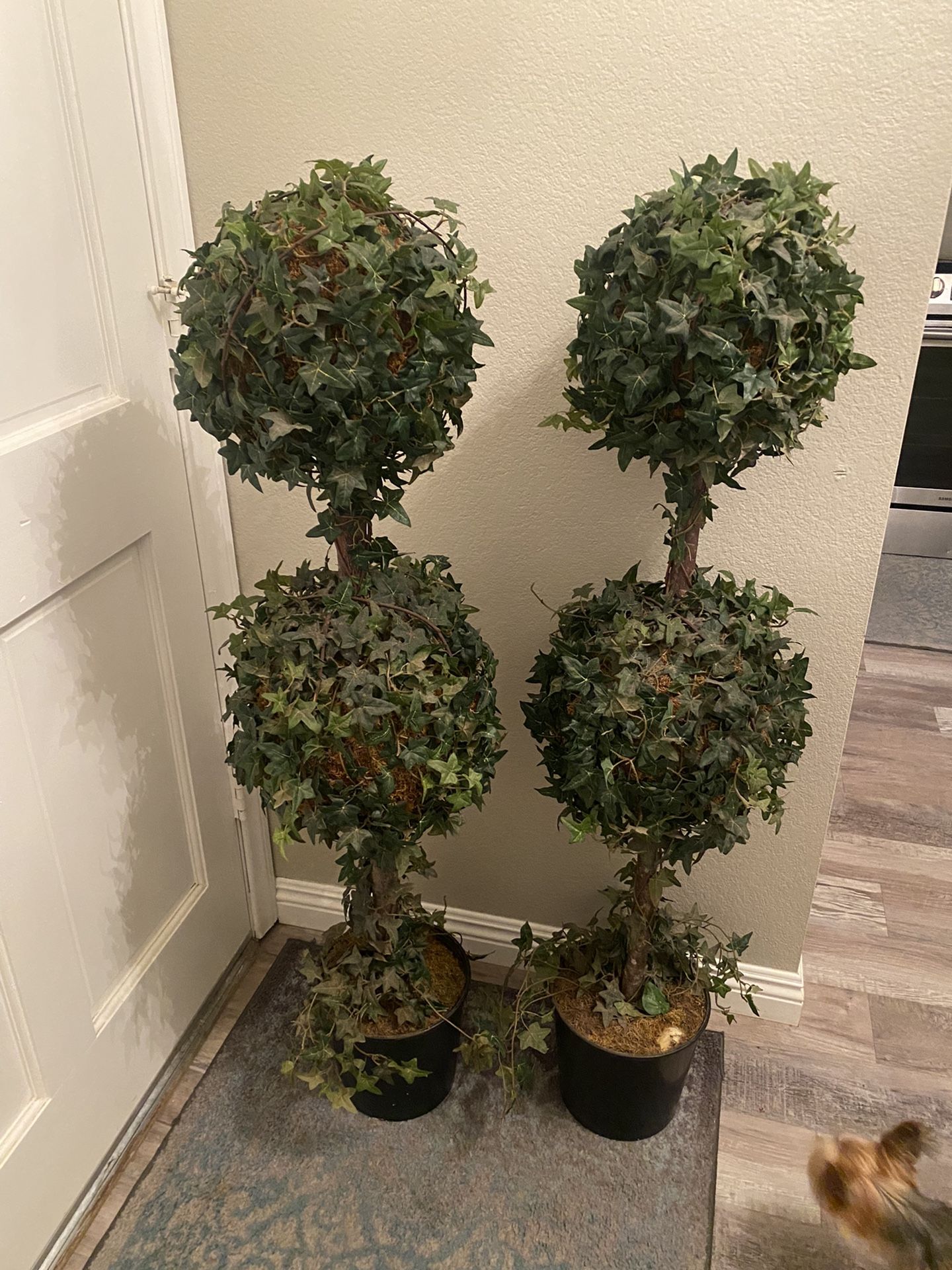 This is a set of two topiary trees they have been used for an entryway. they stand 51” tall.