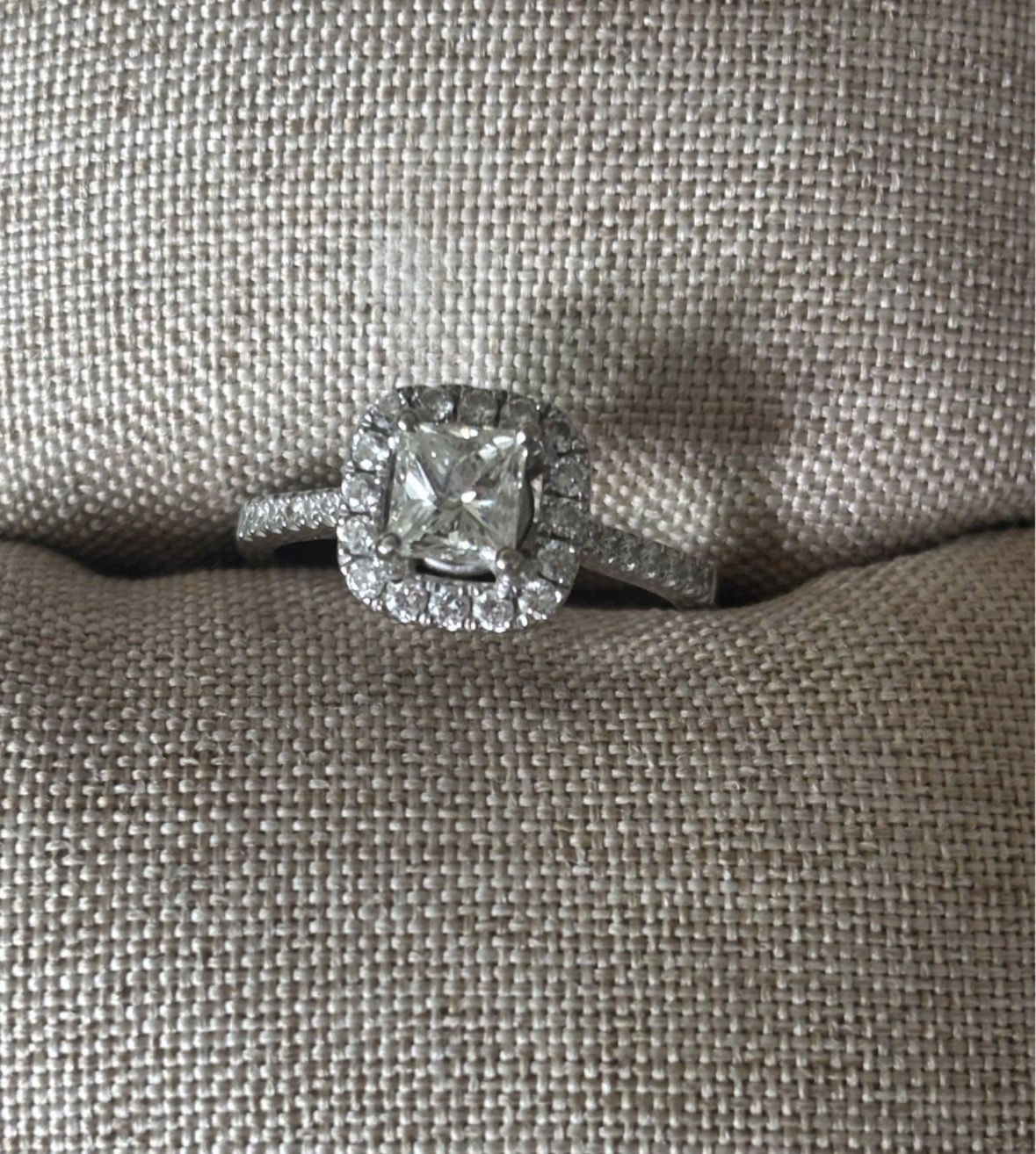 NEVER USED … I paid $4,500 for everything This stunning engagement ring features a 1.00 carat princess cut diamond that captures light beautifully with brilliant fire and sparkle. The stone is set in a timeless [solitaire / halo / pavé] design, creating a perfect balance of elegance and sophistication. Can send lore pics and video on request . Willing to meet at any Jewler to prove it’s authenticity