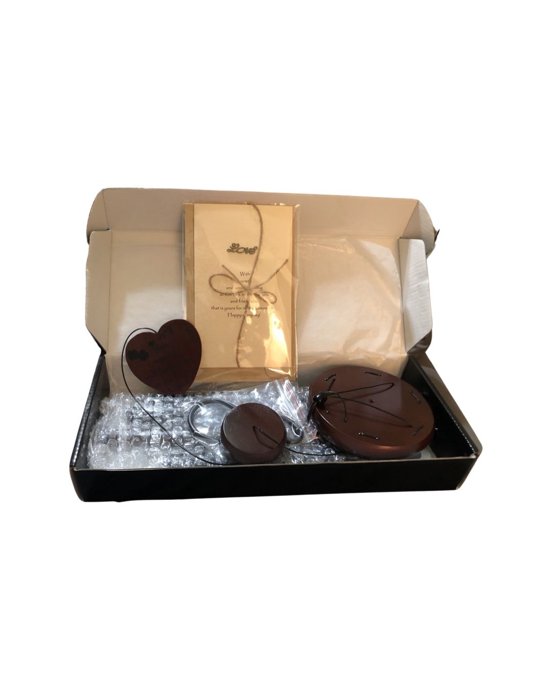 One brand new set, in the box, 32” Bereavement wind chimes. Honor the memory of your loved one and think of them when you hear the deep tone of these chimes when a breeze gently touches them. Beautiful wooden heart engraved with “Your memory will live forever in our hearts “ Also a perfect birthday , Christmas or Bereavement gift for someone special. Would be perfect on your own backyard porch, patio or tree. Or a beautiful thought to place at the resting place of your loved one. (You would need to purchase a metal stake sold separately, to hang them on) Ready to be packaged and shipped to you!