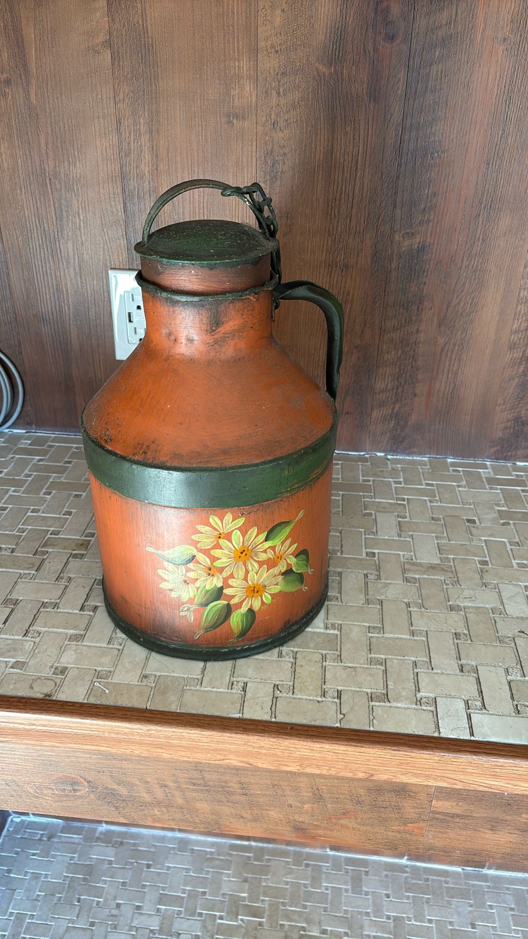 Old Metal Water Can/ Hand Painted