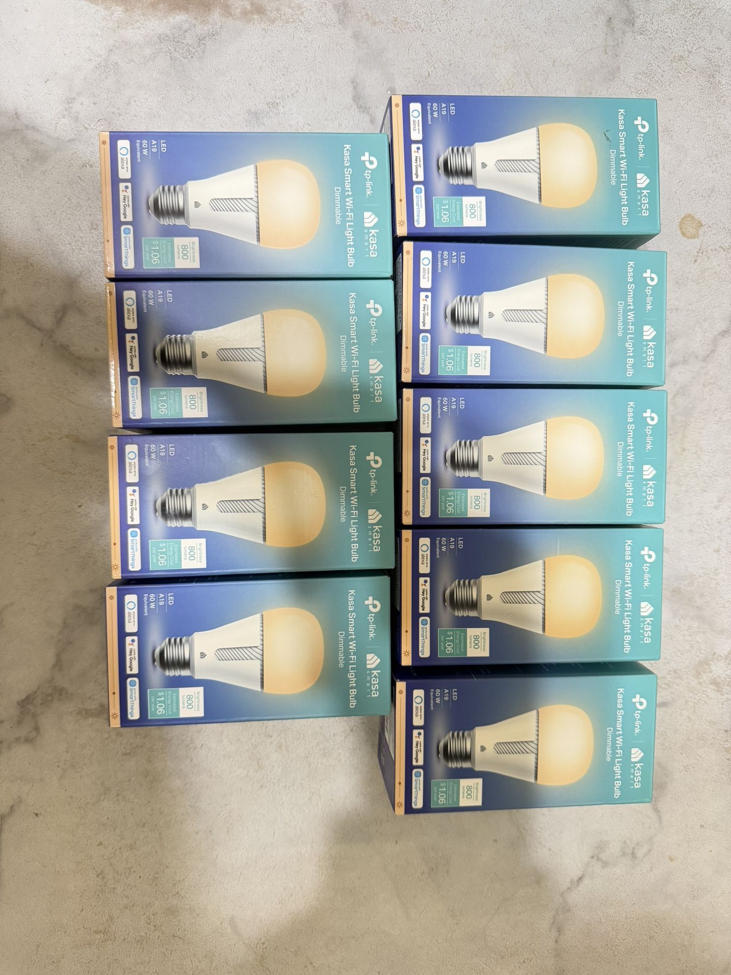 9 count- $2.7 each Kasa Smart Light Bulbs that works with Alexa and Google Home, Dimmable Smart LED Bulb, A19, 9W, 800Lumens, Soft White(2700K), CRI≥90, WiFi 2.4Ghz only, No Hub Required
