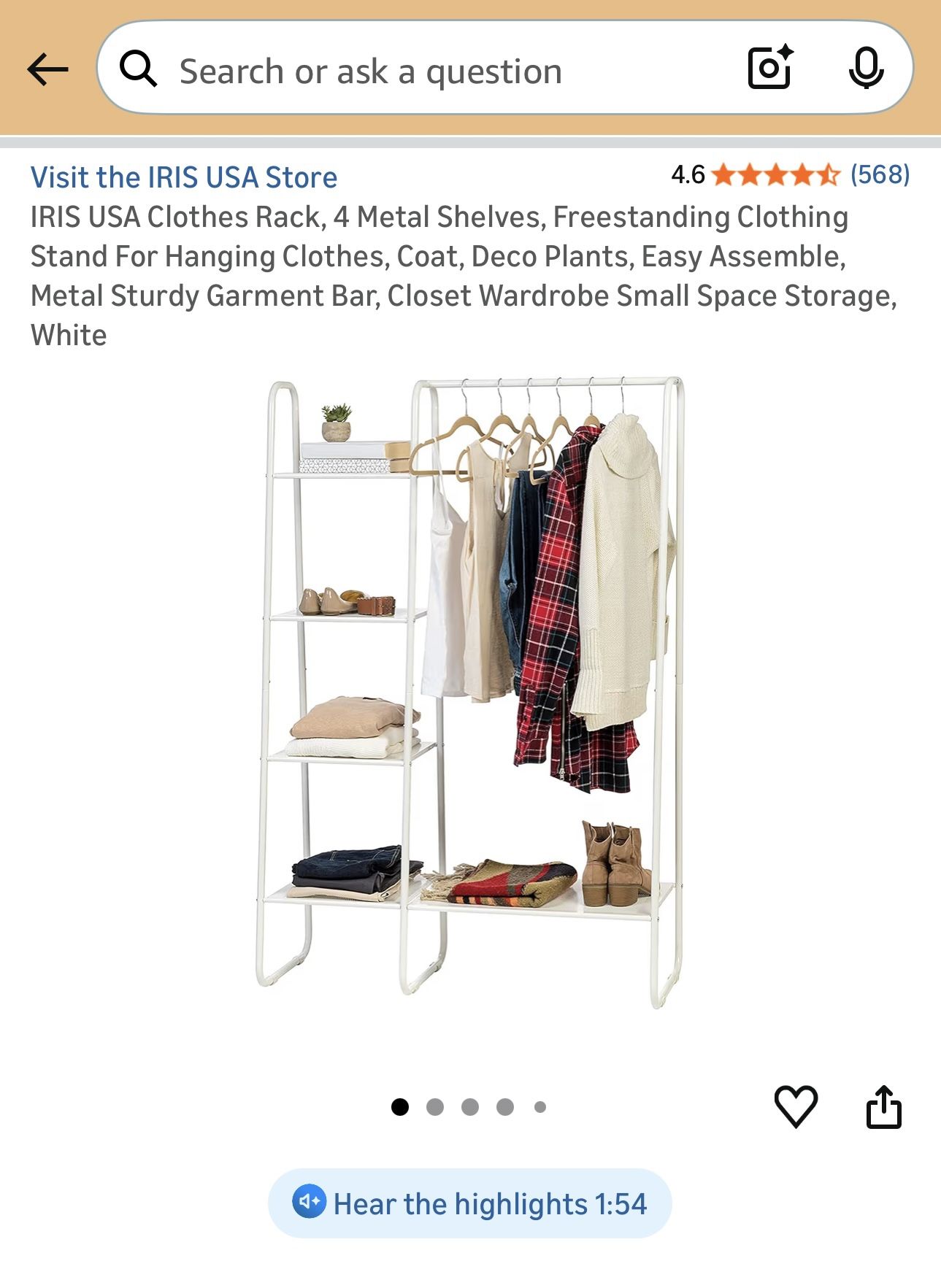 This is a fully assembled, light clothes rack that is easy to pick up and move around. It is in excellent condition and is very sturdy. It is 59” tall x 29.2” wide x 15.75” deep