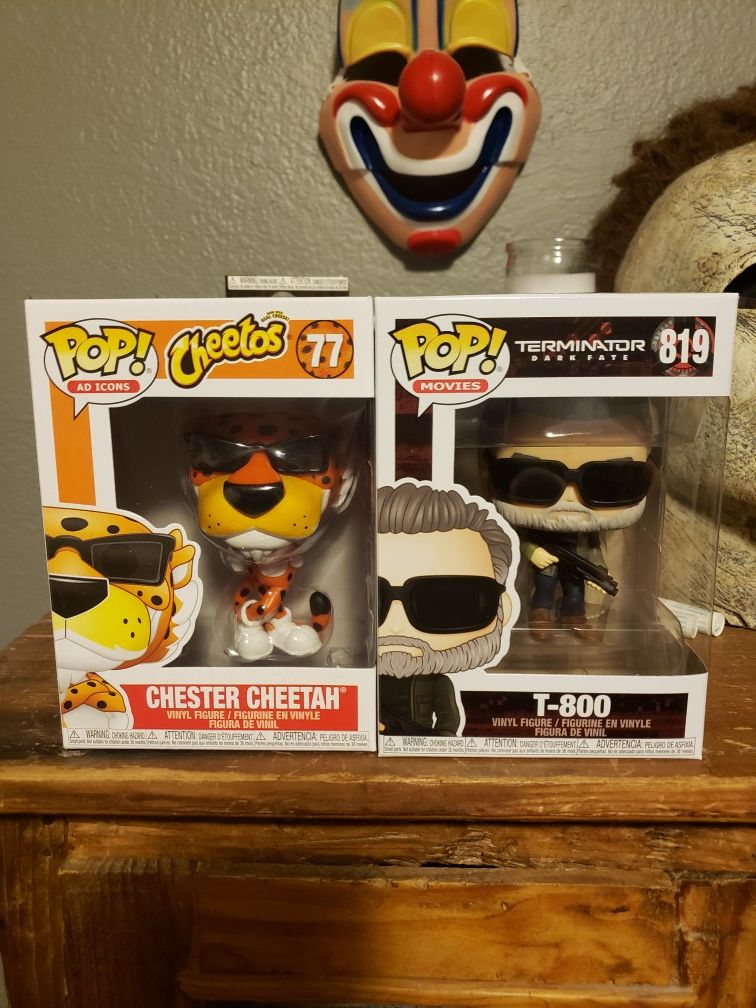 Brand new! in perfect condition both for $30 OBO CHESTER CHEETAH POP and T800 POP (terminator) or trade both for 1 pumpkin king pop