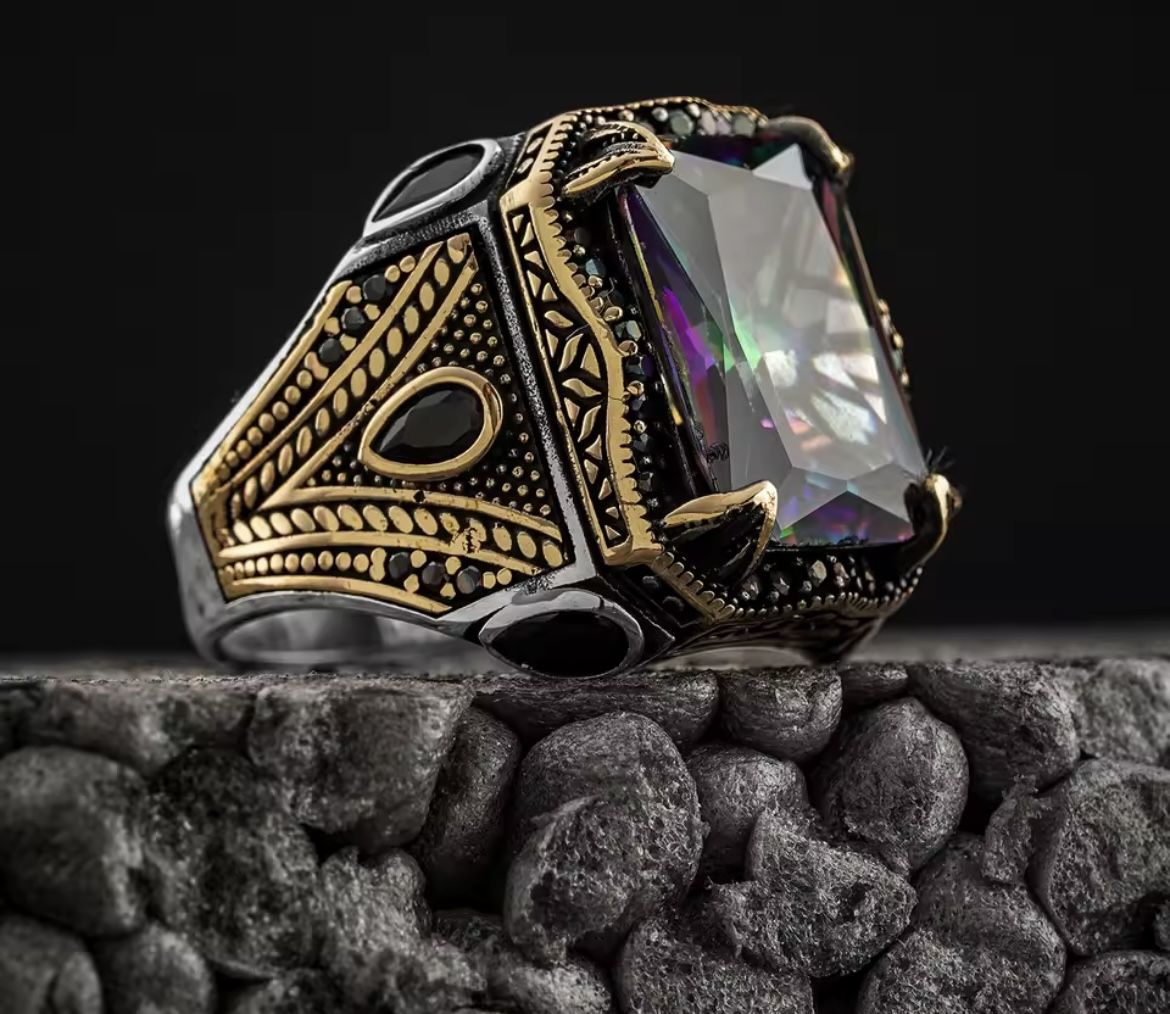 2023 New Copper Material Open Adjustable Ring Color Square Gemstone Personality High Jewelry Luxury Men Wear Wedding Gifts