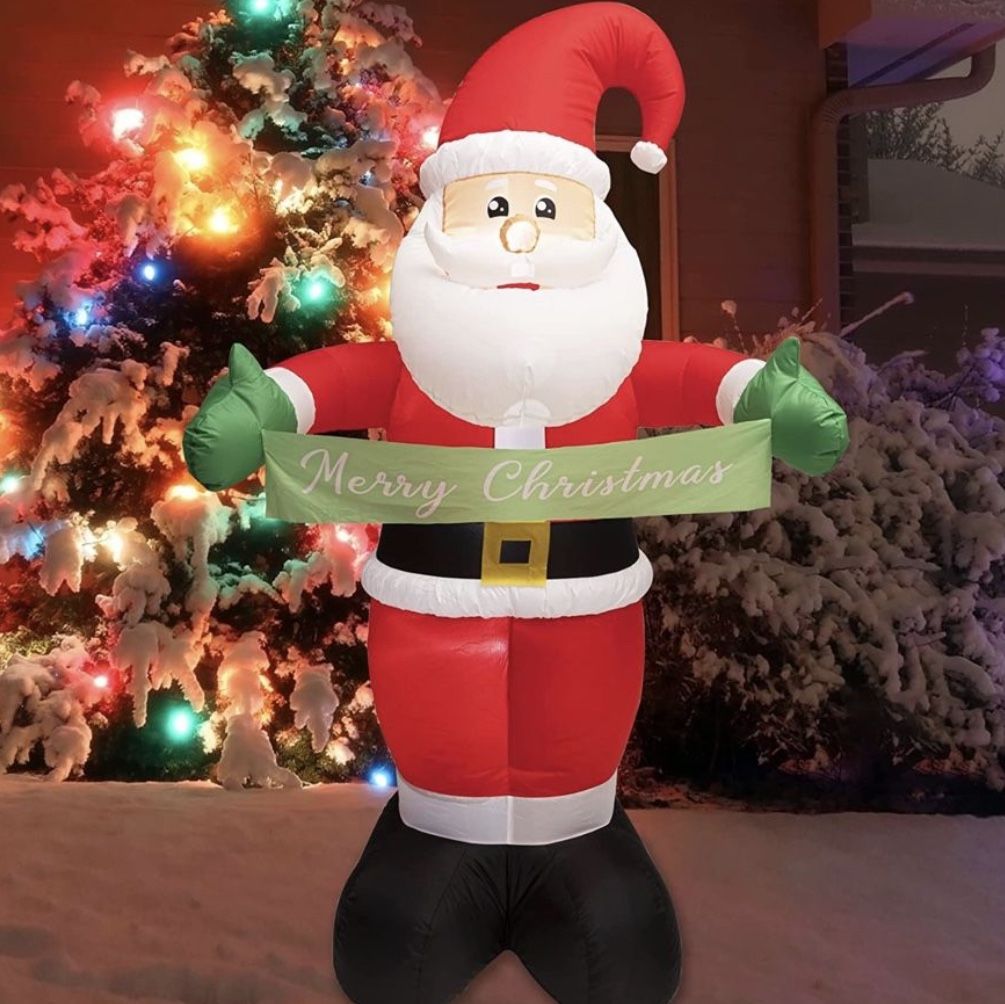 New in box 6FT Christmas Inflatables Santa Claus, Christmas Inflatables outdoor decorations, Built-in LED Lights Xmas Santa with MERRY CHRISTMAS Banner