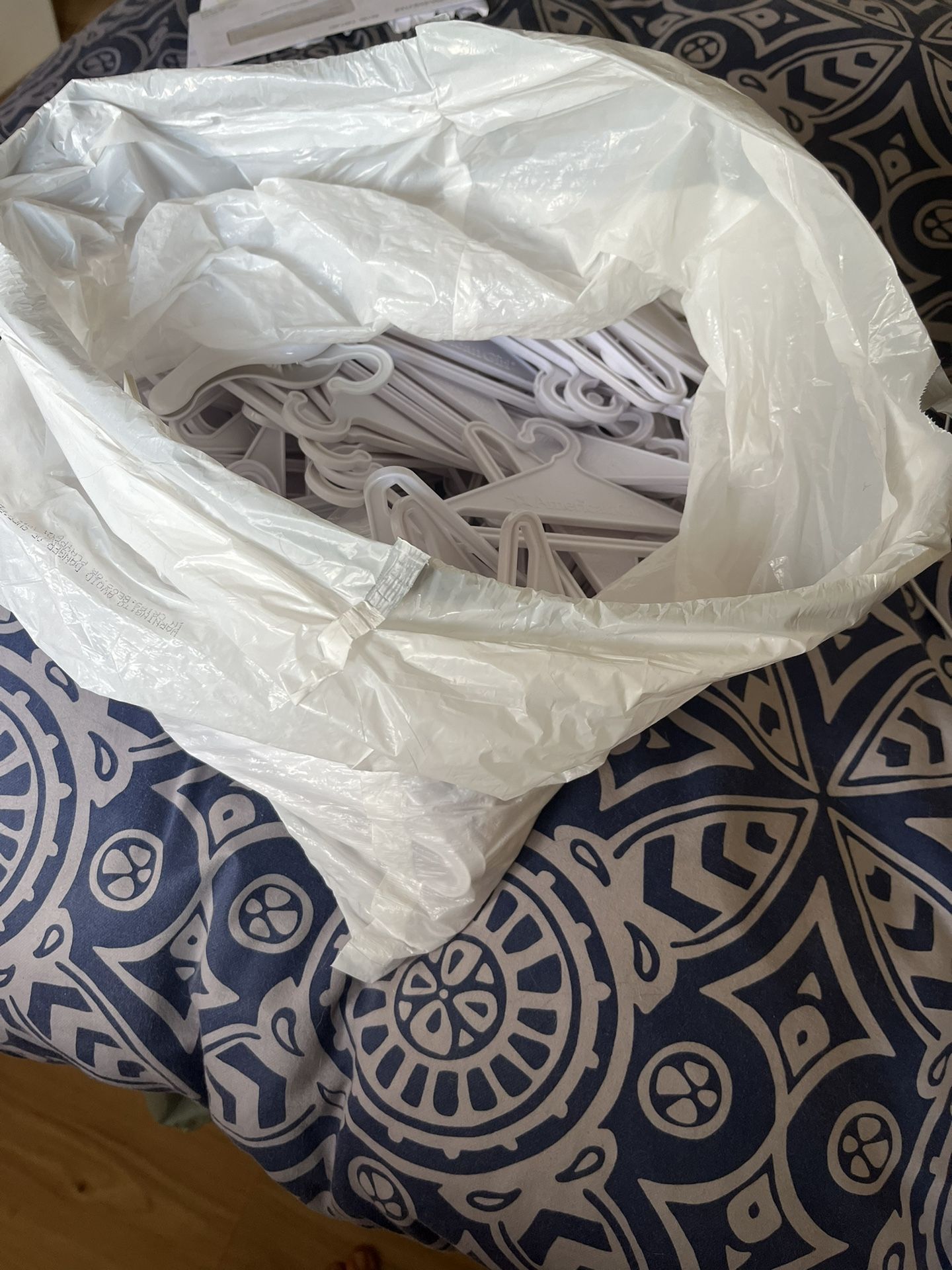 There are around 80 American Girl hangers in this bag. Some can clip a skirt but most are in a regular hanger style.