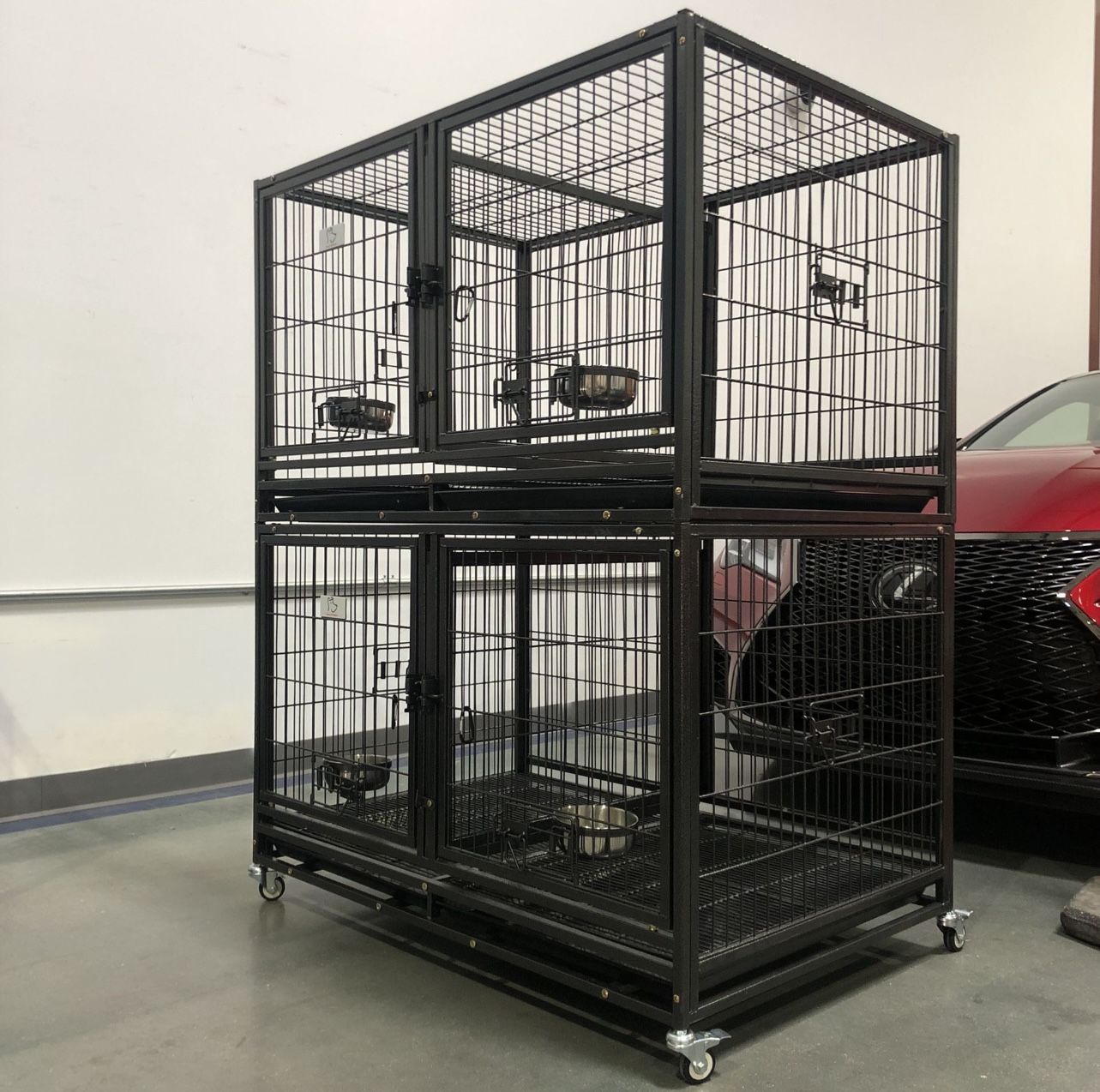 ⚡️STACKED⚡️ 2 Tier Heavy Duty Dog 🐶 Kennels Cages 🐩🐕 With Wheels And Attachable Bowls🎉🐕⚡️