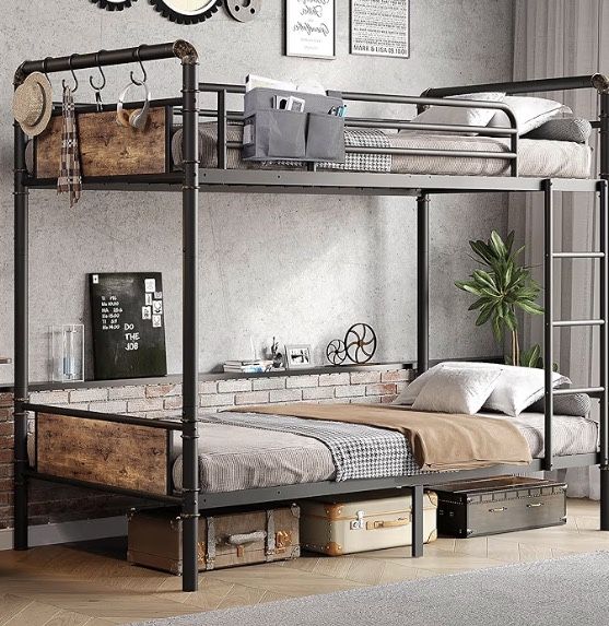lightly used , very study Bunk bed but can used separately Metal Bunk Bed Twin Over Twin, Industrial Bunkbeds Heavy Duty Bed with Safety Guard Rails and Space-Saving Design, Steel Bed for School, Bedroom (Vintage Brown) $167+tax @ Amazon