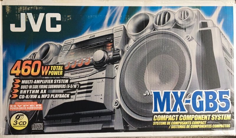 460 Total Watts: Subwoofer:(160W x 2) min. RMS driven into 6 ohms at 63Hz, with no more than 10% THD. Main Speakers:(70W x 2) min. RMS driven into 6 ohms at 1 kHz, with no more than 10% THD. THD at half-rated power: 0.08%(1kHz) G-MAX Twin Hyper Power-Drive Subwoofers RhythMax 3-CD Carousel Changer with Play & Exchange System S.E.A. (3 Modes): ROCK, POP, CLASSIC Live Surround (3 Modes): Dance Club/ Hall/ Stadium) Sources: CD, CD-R/RW, MP3(CD-R/RW), Tuner, Cassette Source Aux Input (Front Mini Jack) 4-way Bass Reflex: 6 5/16"(16cm) Cone Woofer, 2"(5cm) Cone Midrange, 13/16" (2cm) Dome Tweeter, and 6 5/16" (16cm) Cone Subwoofer Programmable Timer (Daily, Rec, Sleep) Compu Play Level Meter Rotary Encoder Volume Control Headphone Output Demo Mode Preset Stations (15 AM, 30 FM) Play & Exchange System CD-R/RW Playback 1-bit Dual D/A Converter Repeat Play (1 Track, 1 CD, All CDs) Continuous Play Smart Random Play Tray Lock Function Full-logic control, dual dubbing cassette deck with CD syncro start recording Multi-Amp Configuration Extended Super Bass 3x2 Array LED Display Remote control Cassette Deck - Frequency Response: 50 - 14,000 Hz, S/N Ratio: 40 dB, Wow & Flutter: 0.15% CD Player - Dynamic Range: 85dB, S/N Ratio: 85 db, THD: 0.08% Subwoofer Level Control (3-Step) Extended Super Bass Punch Metal Grilles Beep Sound Speakers Dimensions (W x H x D): 11 15/16" x 12 7/8" x 13 5/8" (302.5mm x 325.5mm x 435mm), Weight: 29.8 lbs Component Dimensions (W x H x D): 10 11/16" x 12 1/2" x 18 15/16" (270mm x 317mm x 480mm), Weight: 22.1 lbs