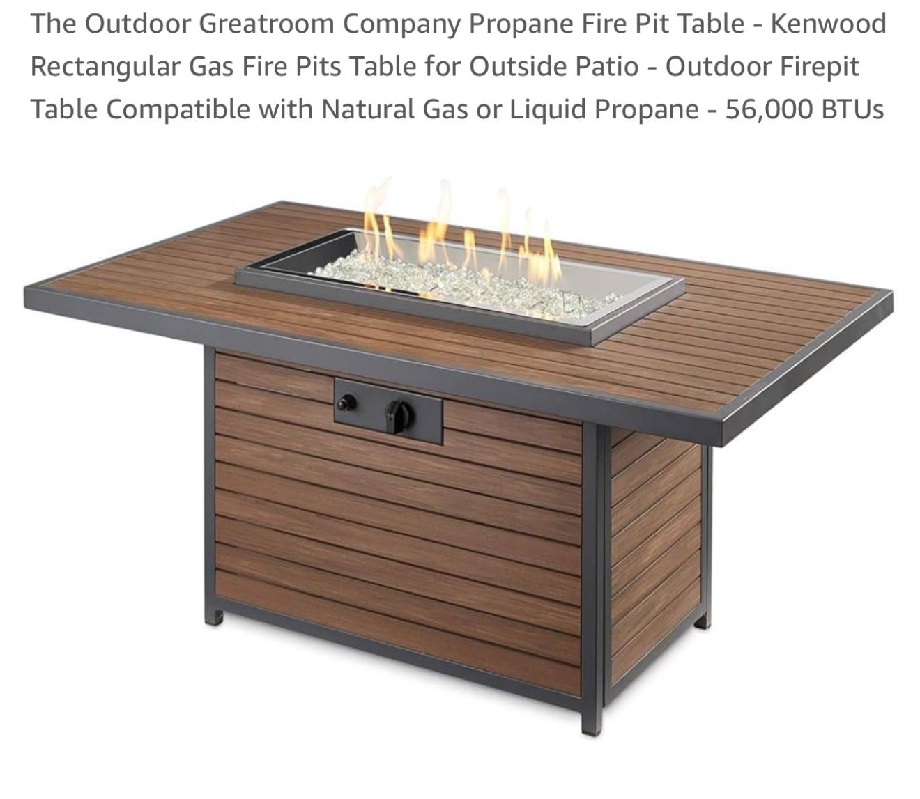 Crystal Fire Plus Burner; intended for outdoor use with decorative glass rocks. This is just the burner, hose/regulator and electric igniter. It needs a table, shell or casing to set it in. 50-100,000 BTu’s. (Table not included-Cover photo is just an example)