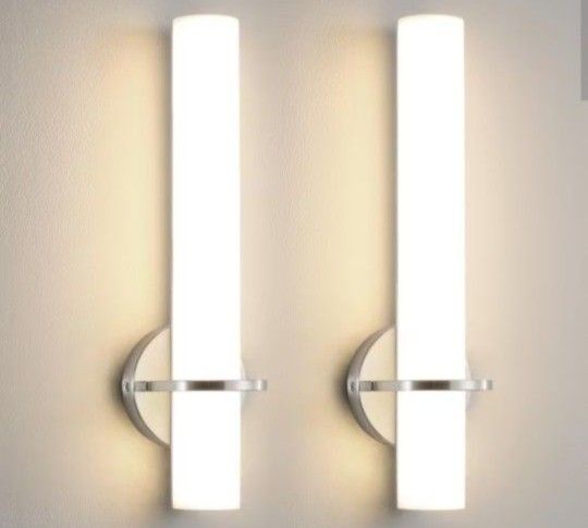 Modern 2-Light Brushed Nickel Dimmable LED Wall Sconce With Acrylic Shade 18W 3000K Vanity Light Fixtures (Set of 2)
