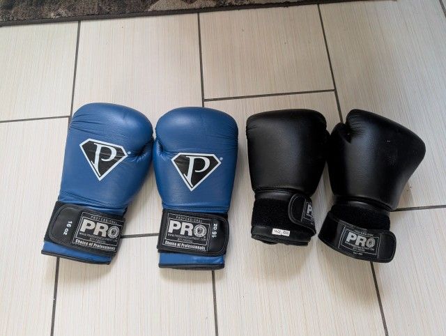 In really good conditions 2 sets boxing gloves different size 1 for kids 2 for adults