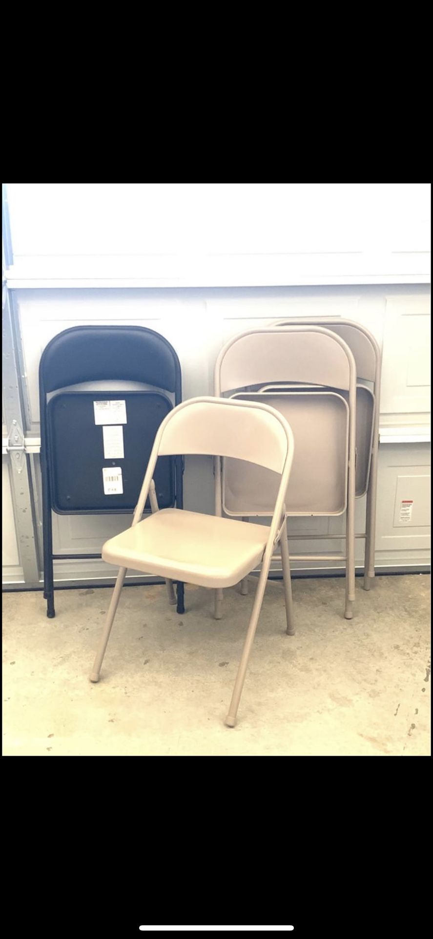 I have 4 beige metal chairs ( pack of 4 chairs $55) Or ( 1 chair $15) I have 24 black metal chairs ( pack of 4 chairs $55) or (1 chair $15 ) Perfect condition