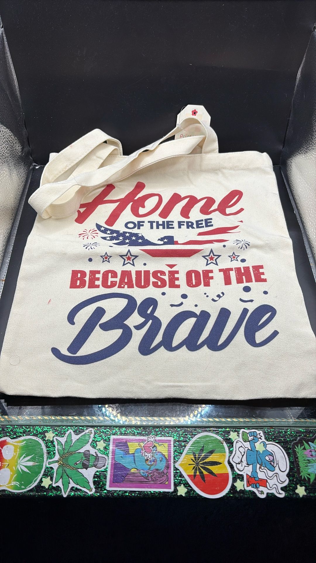 Brand new super cute Fourth of July canvas tote bag, home of the free because of the brave brand new with tags