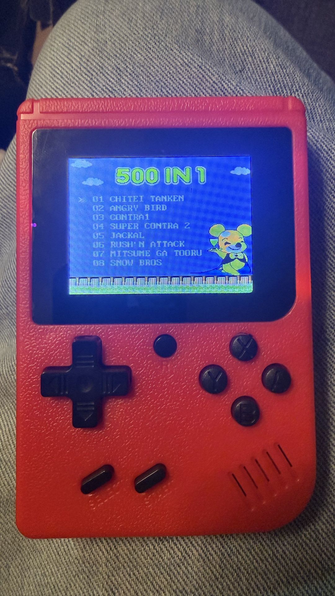 States it has 500-1 games has a charging cable also has cables to connect to a television $15