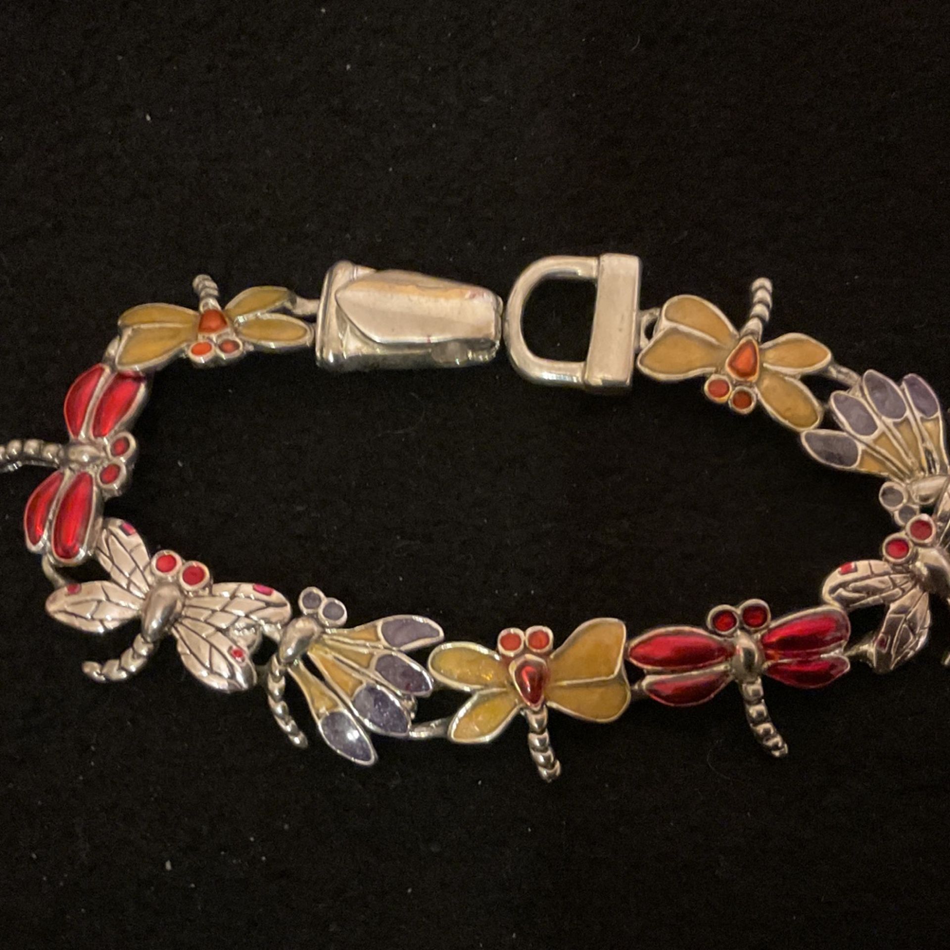 7.5” SilverTone Butterfly With Enamel Bracelet …(red,yellow,& Purple)
