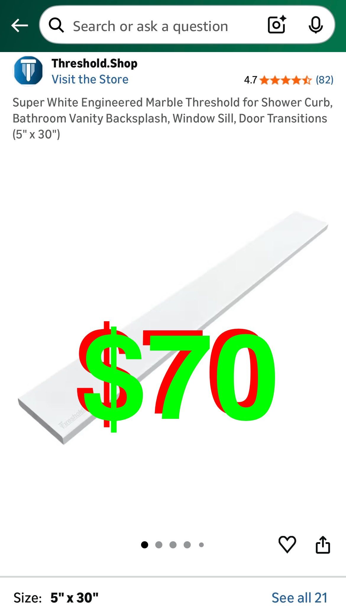 Threshold Shop - Super White Engineered Marble Threshold for Shower Curb, Bathroom Vanity Backsplash, Window Sill, Door Transitions (5" x 30") Note: Last one left.