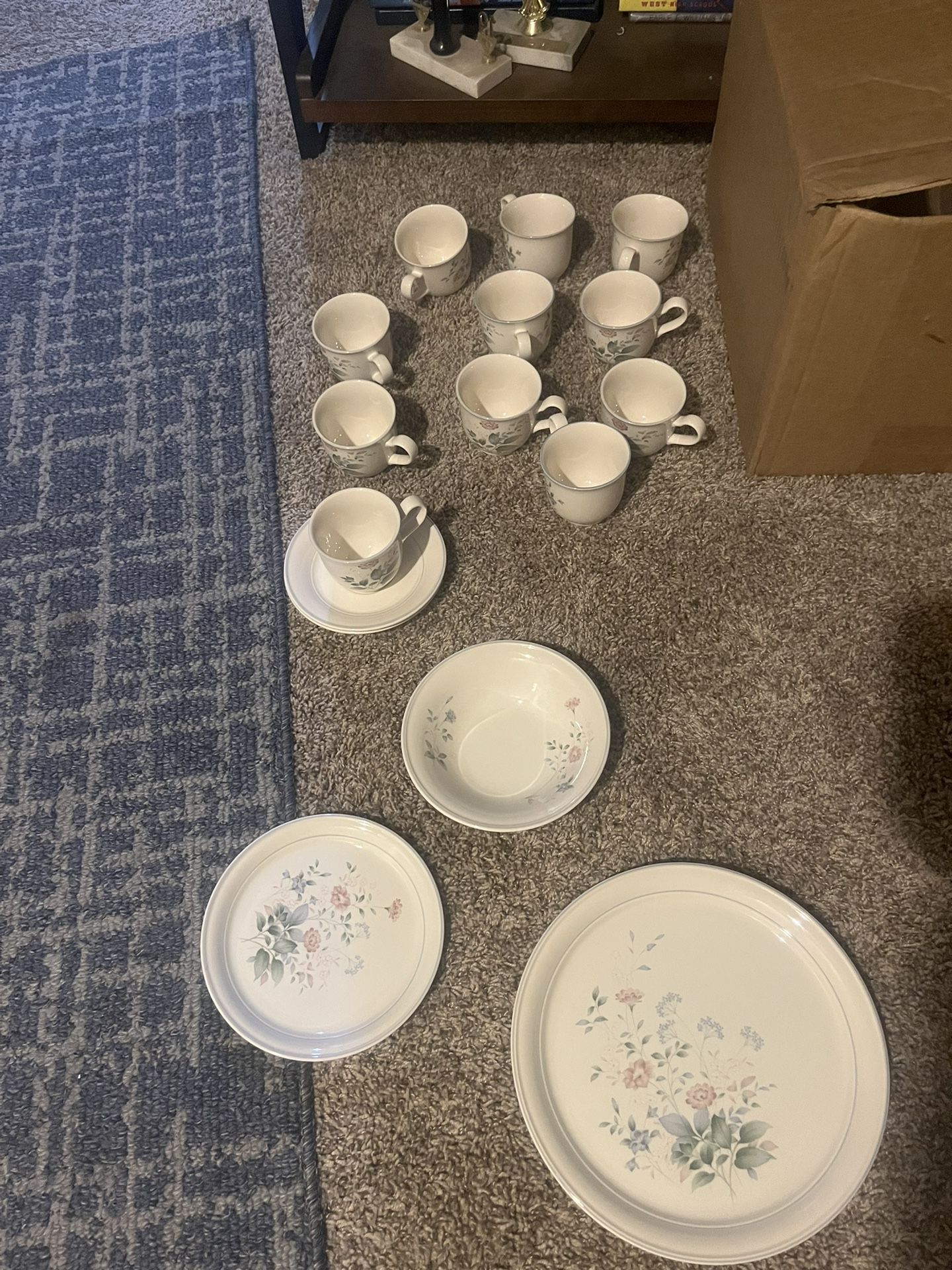 60 piece dinning set. Main plates, salad plates, coffee cups and saucers. Great condition. Dinner, food, cake, dress, stroller, wedding, house, homeware, cooking,