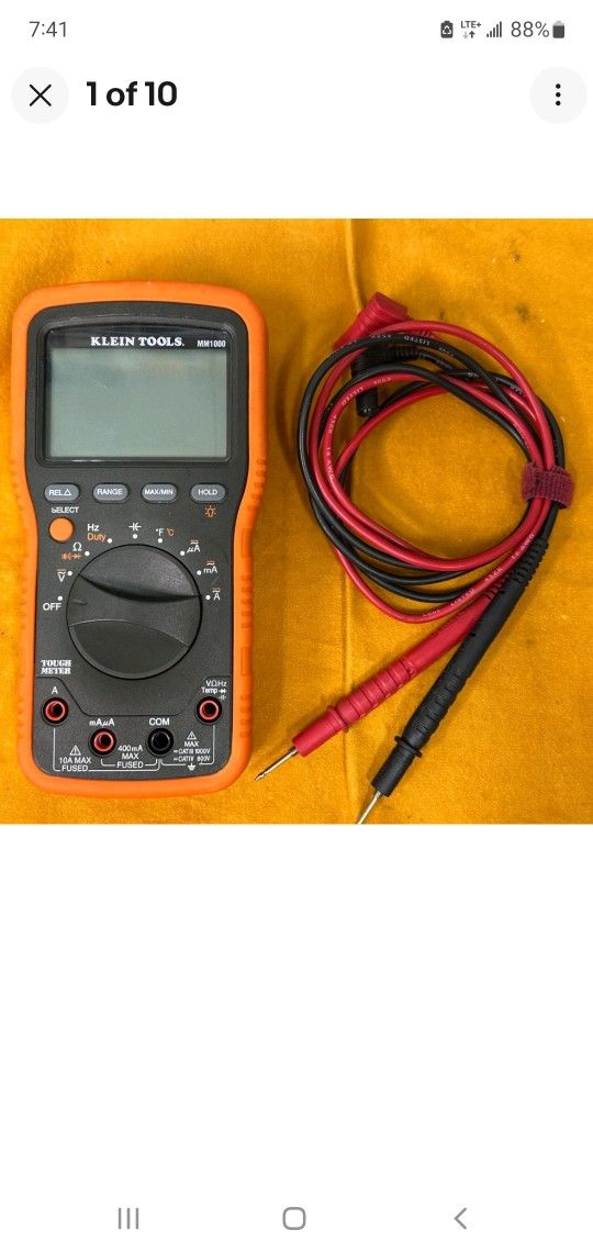 Up for sale is my Klein MM1000 digital multimeter. Meter has been fully checked out. Both fuses were checked. Replaced the 44/100A fuse and tested the meter using my my DMM Check Plus standard. All functions tested good as well as the back light. Cosmetically this meter is a 9 out of 10. There are some small scratch on the display lens. I took the meter apart so that I could gain access to the clear lens and buffed out most of them, but some still remain. Meter was reassembled and tested again. Other than that, she's very clean Meter will come with a set of probes and a fresh set of batteries (already installed) and nothing more. Instructions and all other documentation is still available on the Klein website. The Klein MM1000 Electrician's Multimeter is a handheld digital multimeter designed for professionals by Klein Tools. This multimeter is ideal for electrical testing and measurement, providing accurate readings for a variety of electrical parameters. With its compact form factor and easy-to-read digital display, the Klein MM1000 is a reliable tool for troubleshooting and ensuring electrical safety in various industrial and commercial settings.