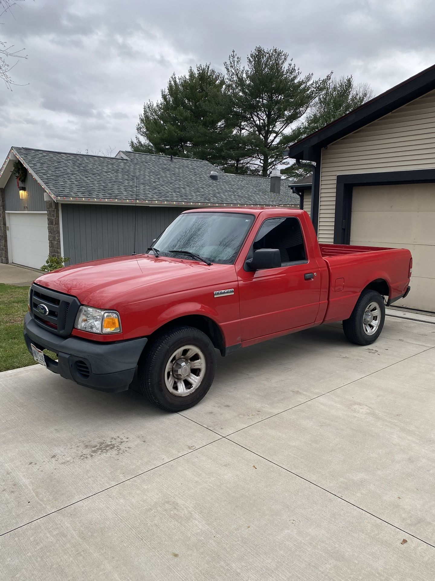 red 2010 Ford Ranger regular cab with a 6’ bed and a 2.3 liter 4 cylinder engine with 115,500 miles. Kelly Blue Book values it between $4,976 to $8,063 with a medium range of $6,523.