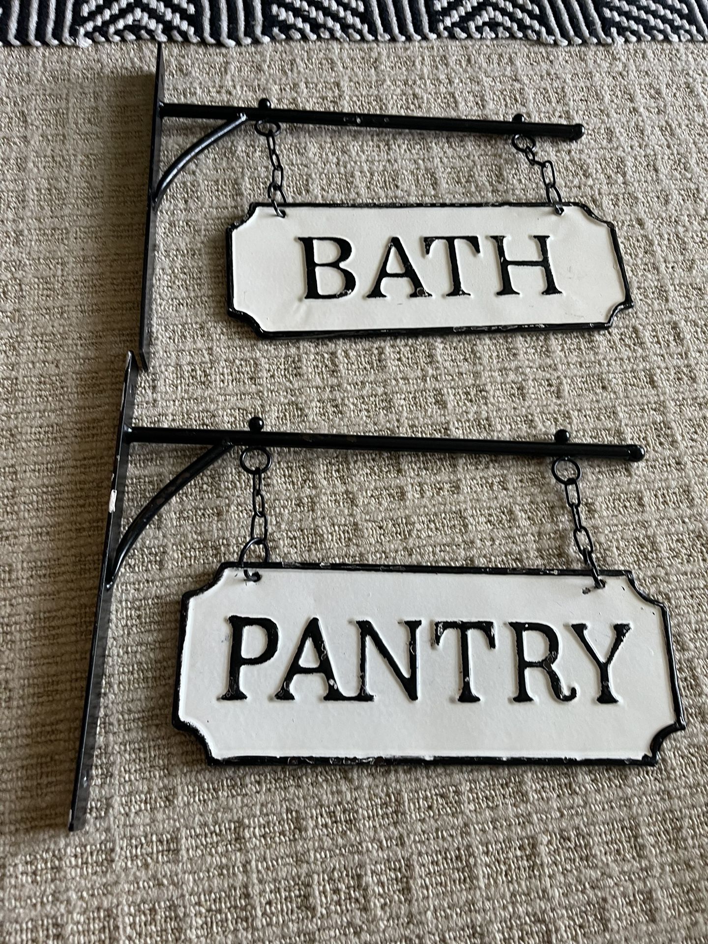 Two metals signs Pantry Bath Asking $30 for both Pick up in 98201 Everett..d