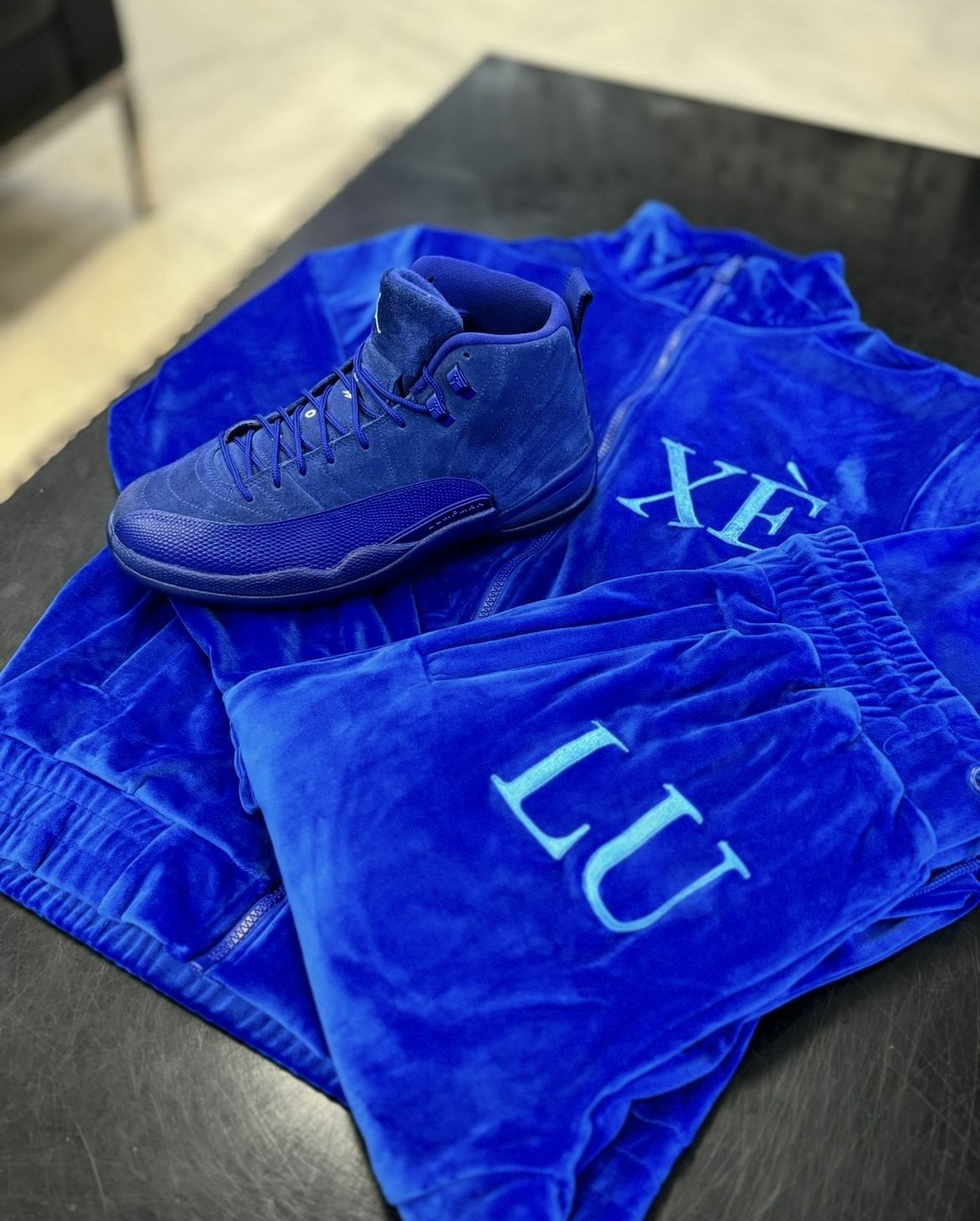 Designer Streetwear, Zip-Up Track Jacket Jogger Pants Set, Velour Material